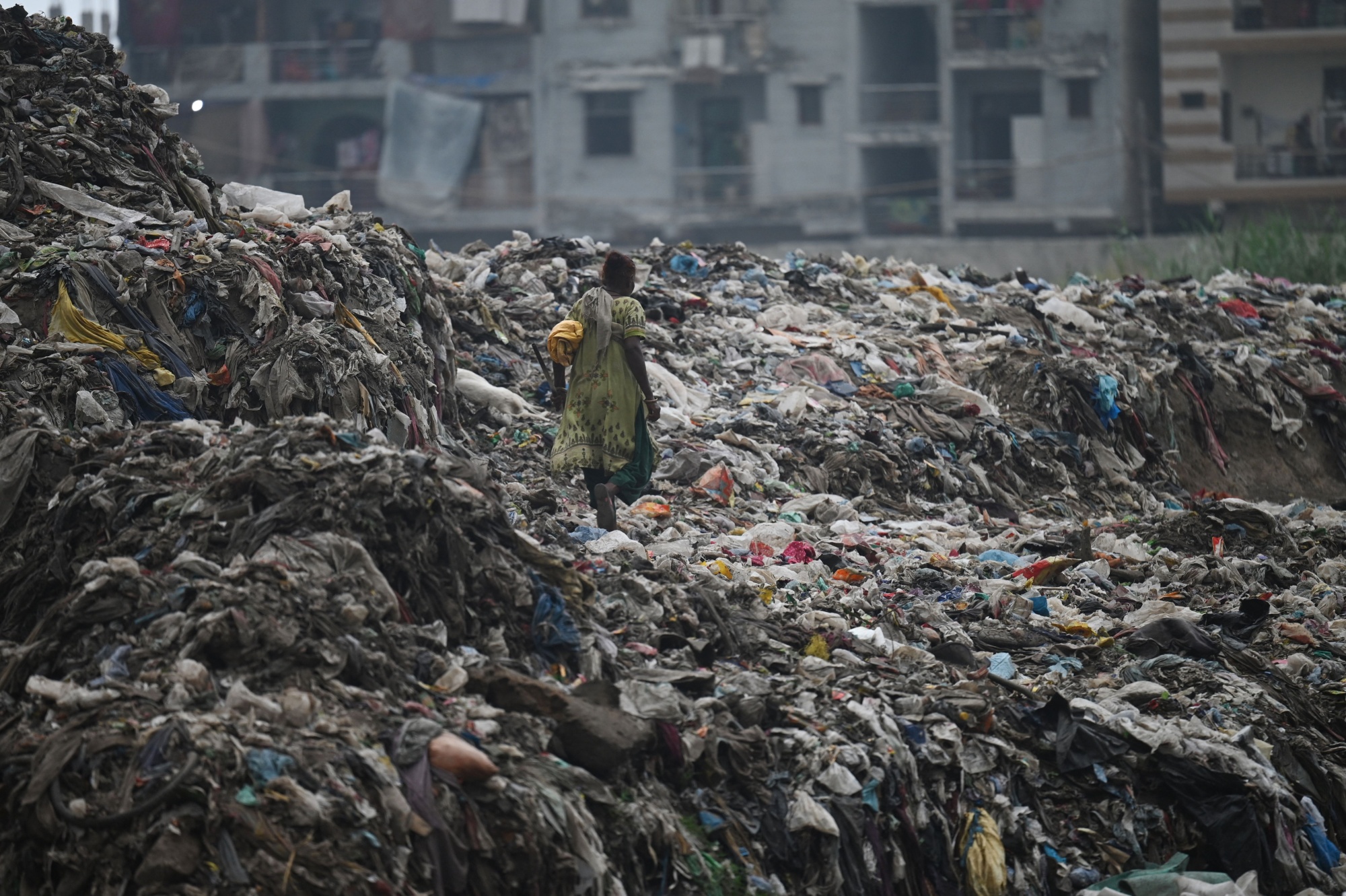 一名妇女在新德里的倾倒场寻找可回收材料。摄影师:Money Sharma/AFP/Getty Images