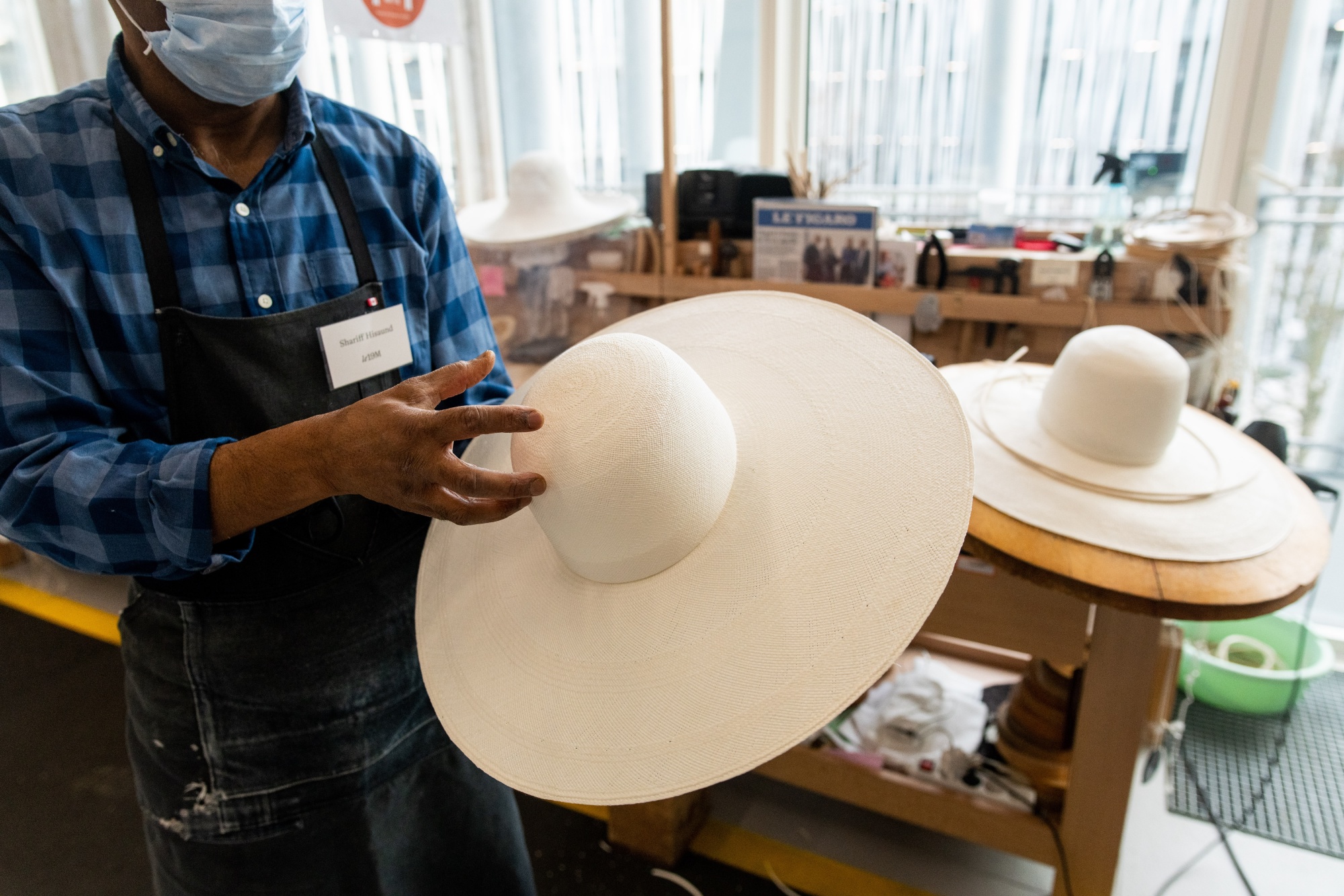 一位帽子制造商在法国奥贝维利耶的香奈儿SA 19M校园的Maison Michel车间里制作帽子。