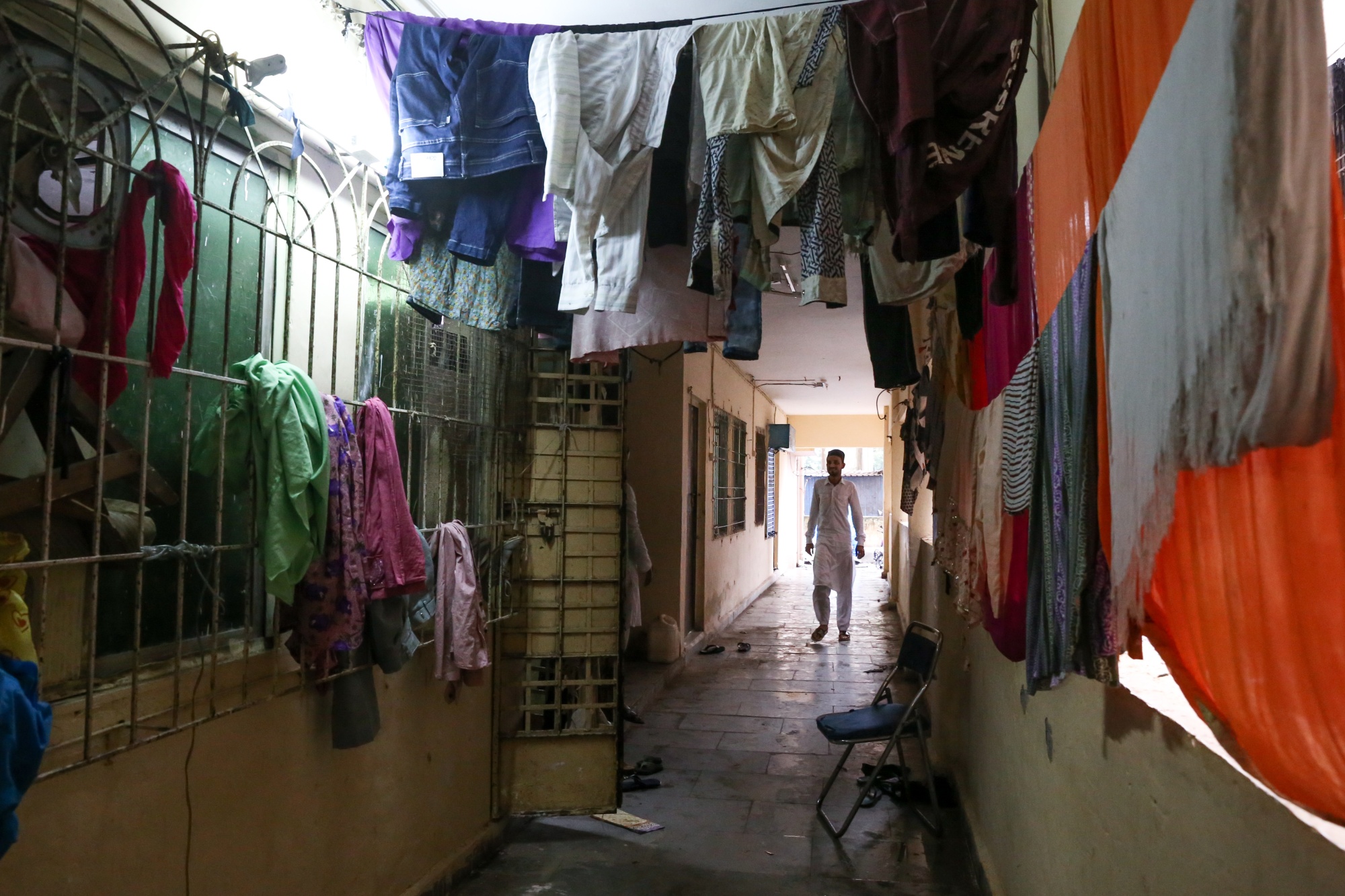 来自Natwar Parekh的观点:底层狭窄的走廊几乎没有自然光线。摄影师:Catherine Davison。已经证明阳光在减轻结核病传播中起着至关重要的作用,不仅使细菌在体外存活更加困难,还有助于产生维生素D,有助于抵抗感染。