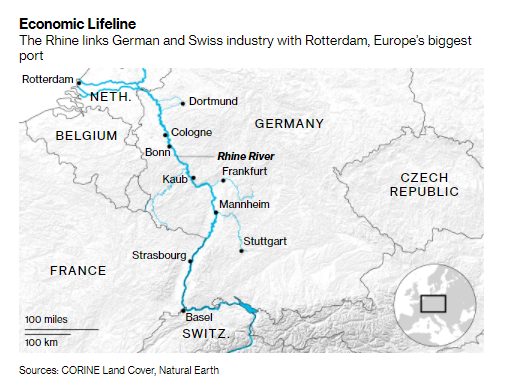 供应链最新消息:德国莱茵河水位下降加剧航运困境 - 彭博社