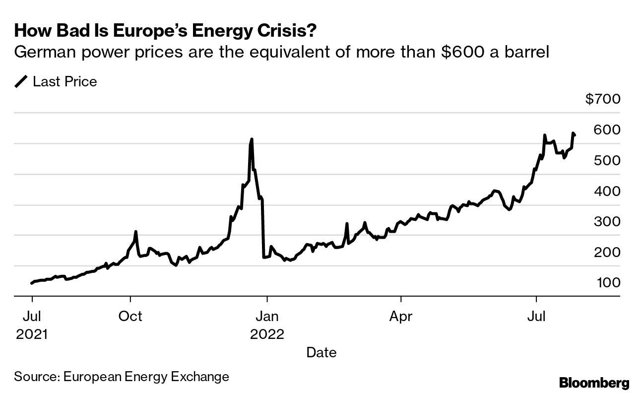 今天欧洲的价格继续上涨,天然气价格上涨高达14%。以油价计算,德国的电力现在相当于每桶超过600美元。