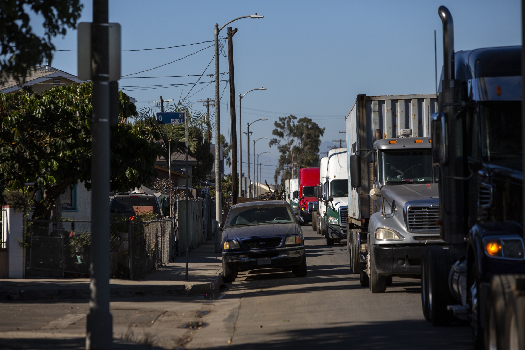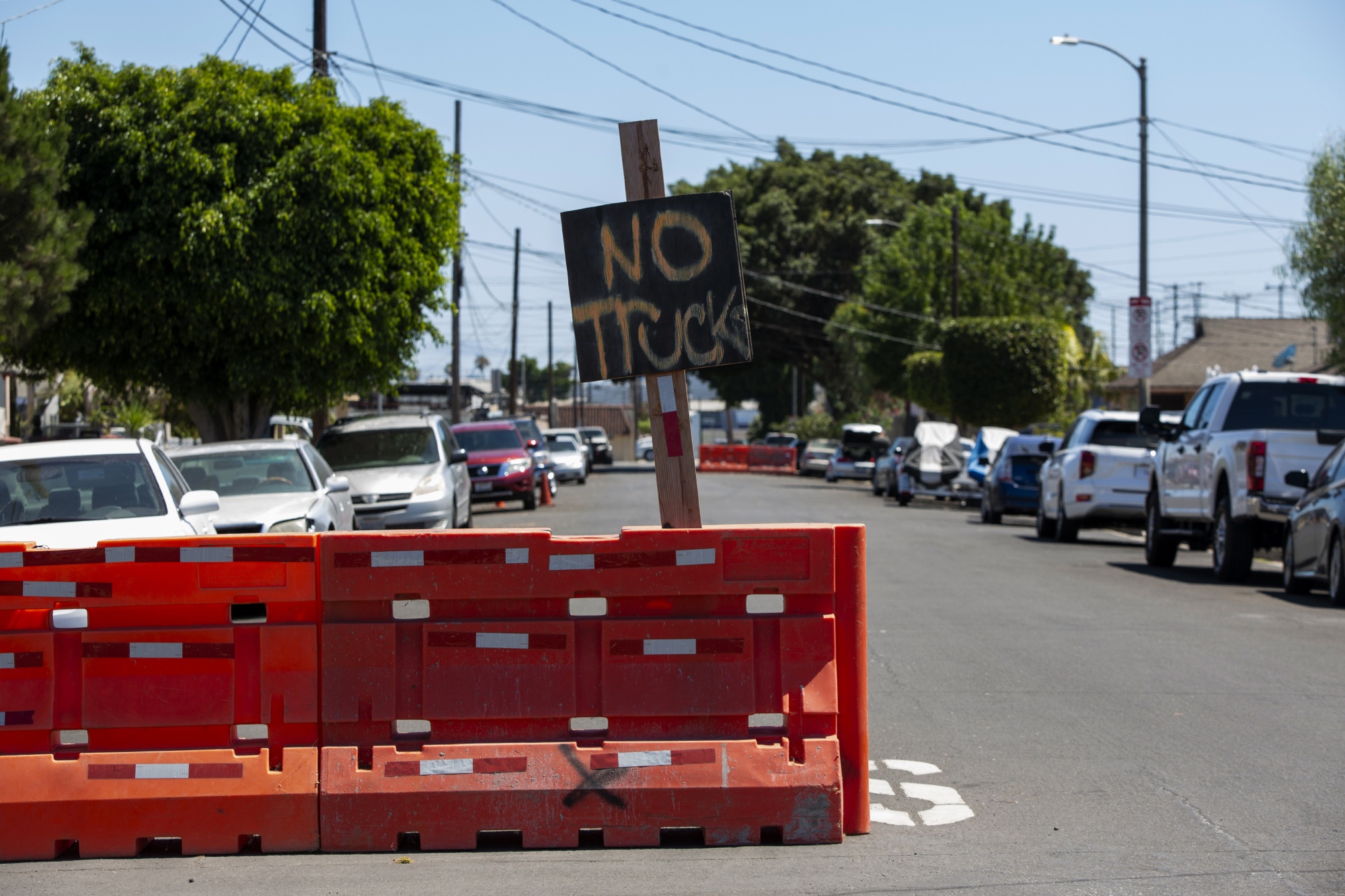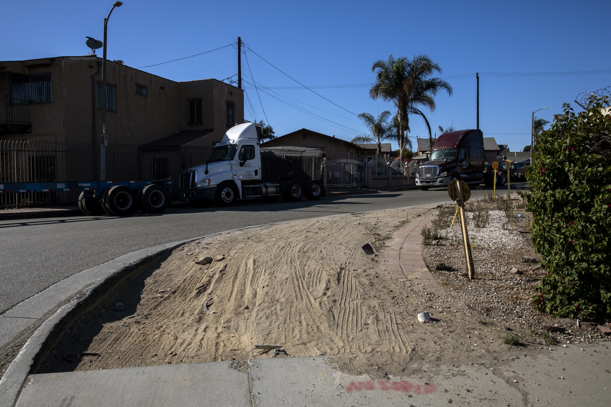 最近的一天,人们看到一辆辆卡车不断地在一条已经成为它们常用路线的居民街上隆隆作响。人行道的一些部分已经被碾成沙子,因为18轮卡车越过路缘,喷起尘土。