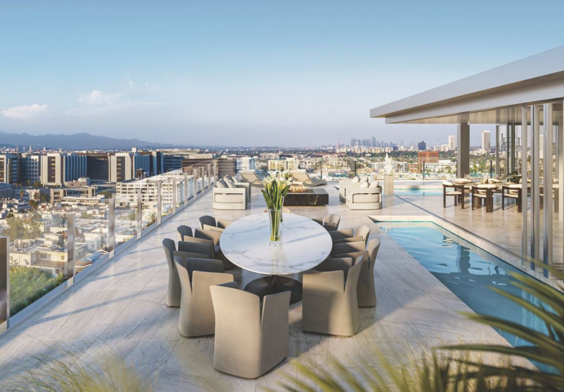被称为“One L.A.”的复式公寓拥有12,700平方英尺(1,200平方米)的居住空间,私人电梯和私人六车位车库。环绕式屋顶露台配有游泳池和两个倒影池,可以俯瞰好莱坞山脉、洛杉矶市中心和太平洋。