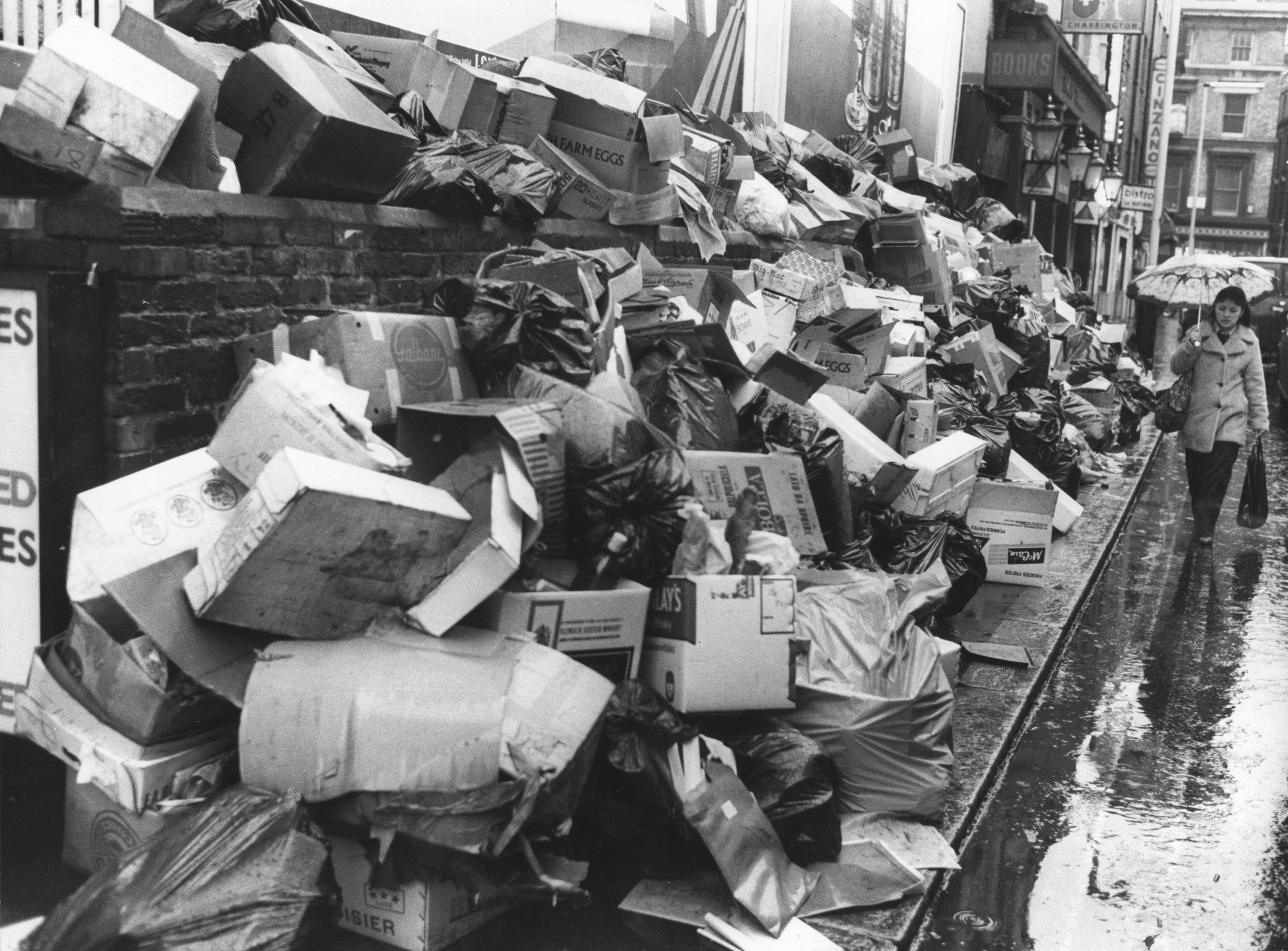 1979年“不满之冬”期间伦敦因垃圾工人罢工而积满垃圾的人行道。摄影师:格雷厄姆·特纳/赫尔顿档案馆事实上,一些议员暗示特拉斯可能选择提前举行大选。理论是,她最好在自己还是一个新面孔时去向国民征求意见,而不是在执政两年后因危机而声名狼藉。