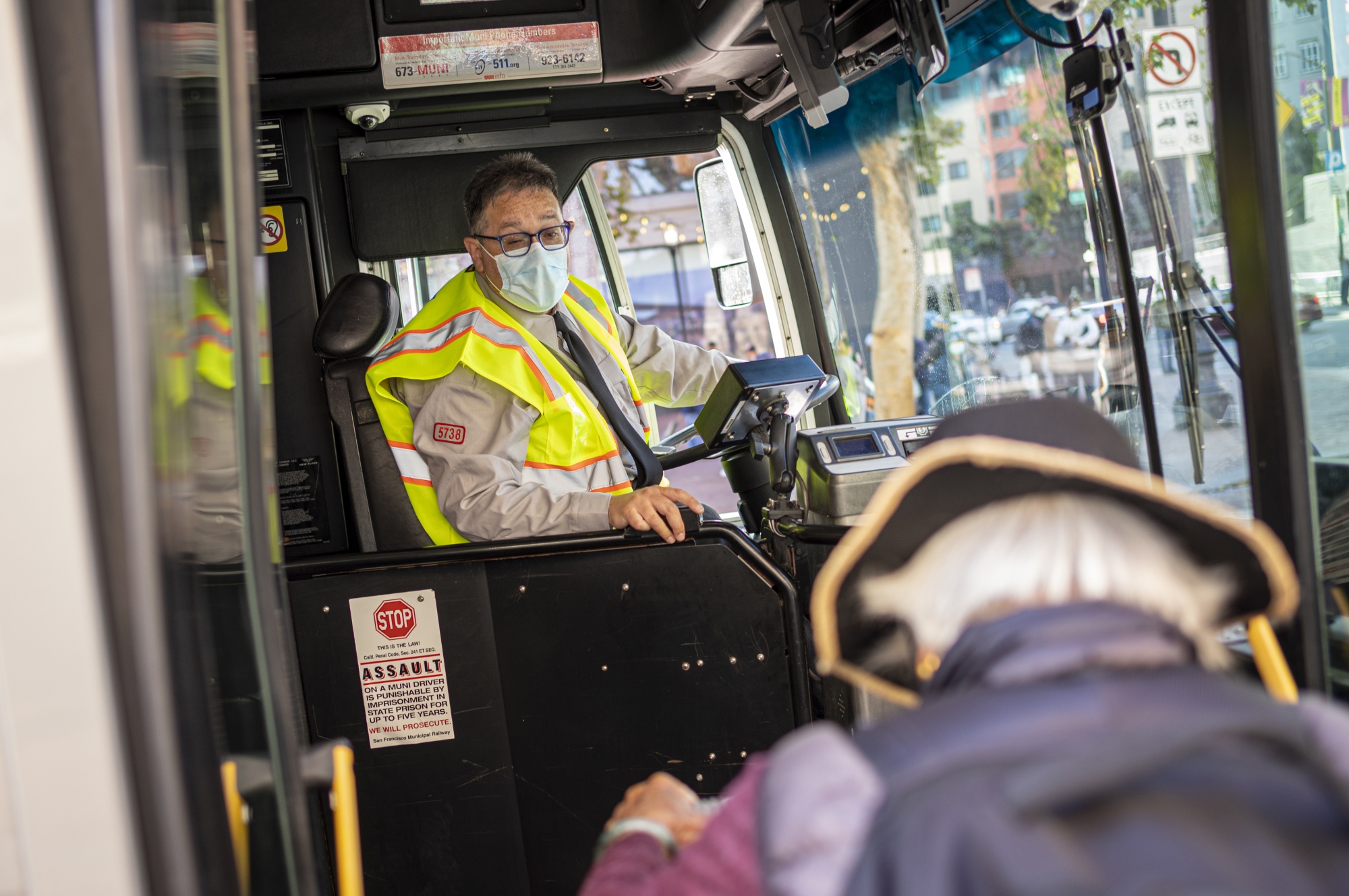 疫情继续蔓延。疫苗到货;旧金山及其邻近城市“重新开放”。社交距离要求被取消,SFMTA 开始恢复 大部分之前暂停的线路和服务。每次公交车行程仍然需要我立即决定如何处理不戴口罩的乘客。我并不总是做对,但我坚持不懈,像以往一样坚决地执行口罩使用规定,尽管这对我造成了伤害。