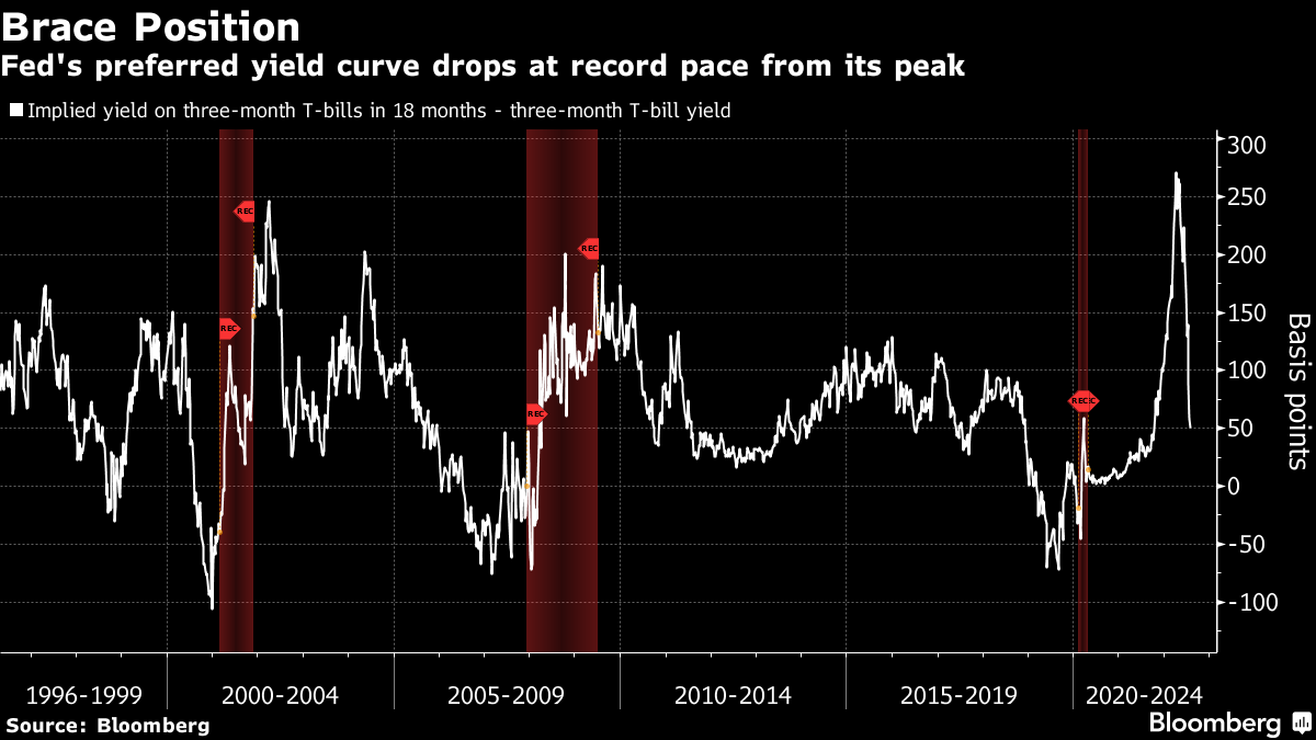 债券已经开始定价经济衰退。鲍威尔青睐的收益率曲线部分正在以创纪录的速度变平以发出警报。人们担心市场可能误读了鲍威尔的转变,以及关于在通胀创下数十年新高的情况下是否为此类转变为时过早的争论。
