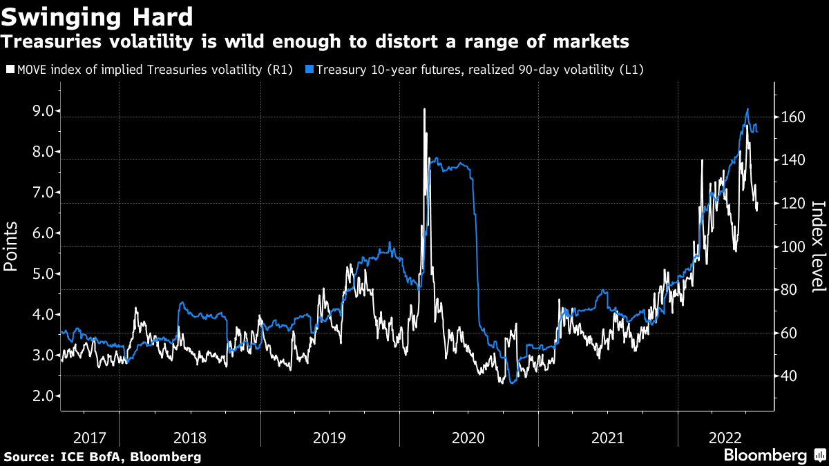 全球债券市场正努力跟上横扫资产类别的交叉风潮。一代人以来最高的通货膨胀率、央行大幅加息以及一波地缘政治风险是推动几乎每个其他市场用作回报和/或借贷成本基准的收益率发生剧烈波动的动力之一。