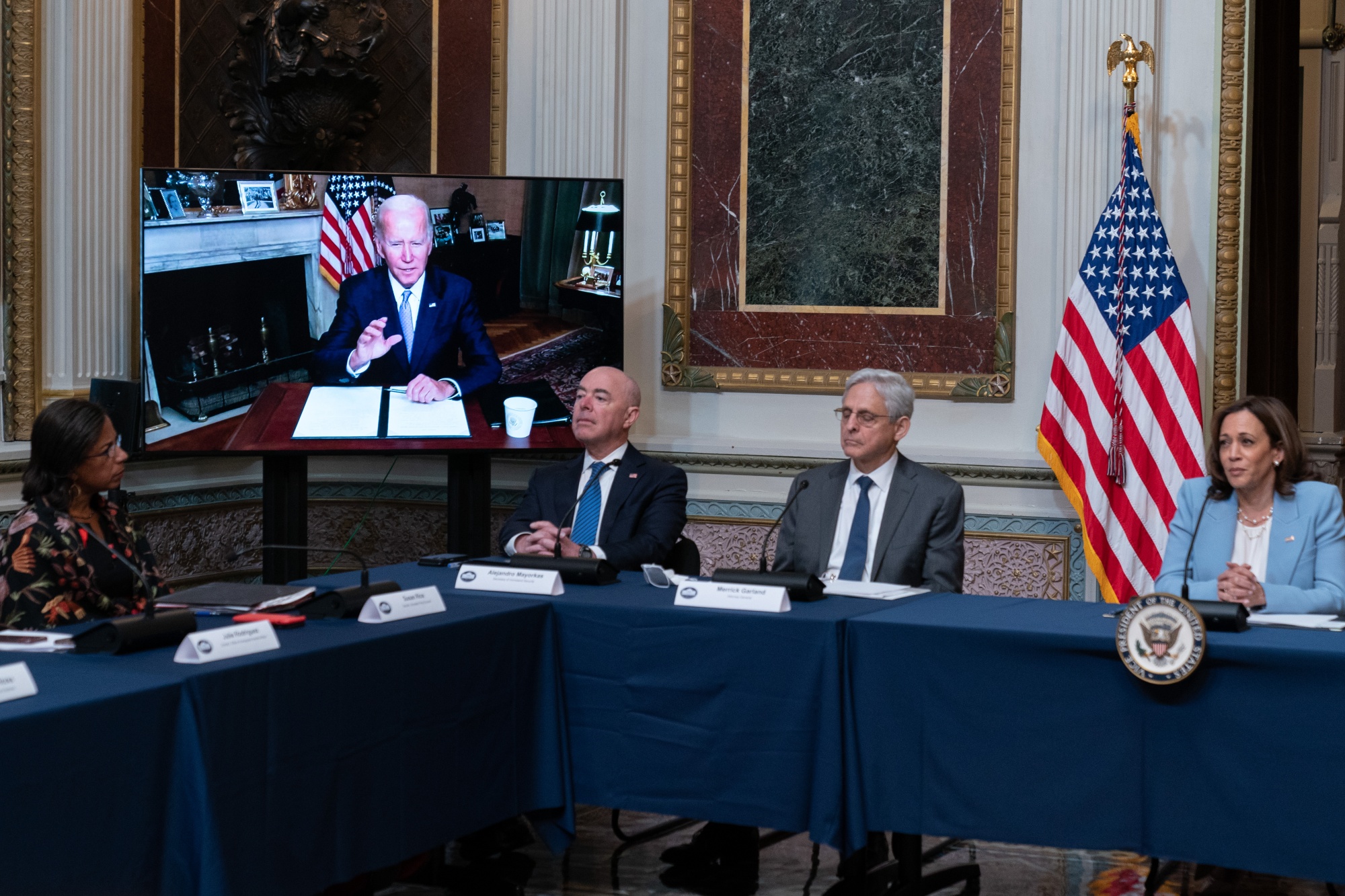 乔·拜登总统在华盛顿虚拟发表讲话,讨论获取生殖健康保健的问题,时间为8月3日。