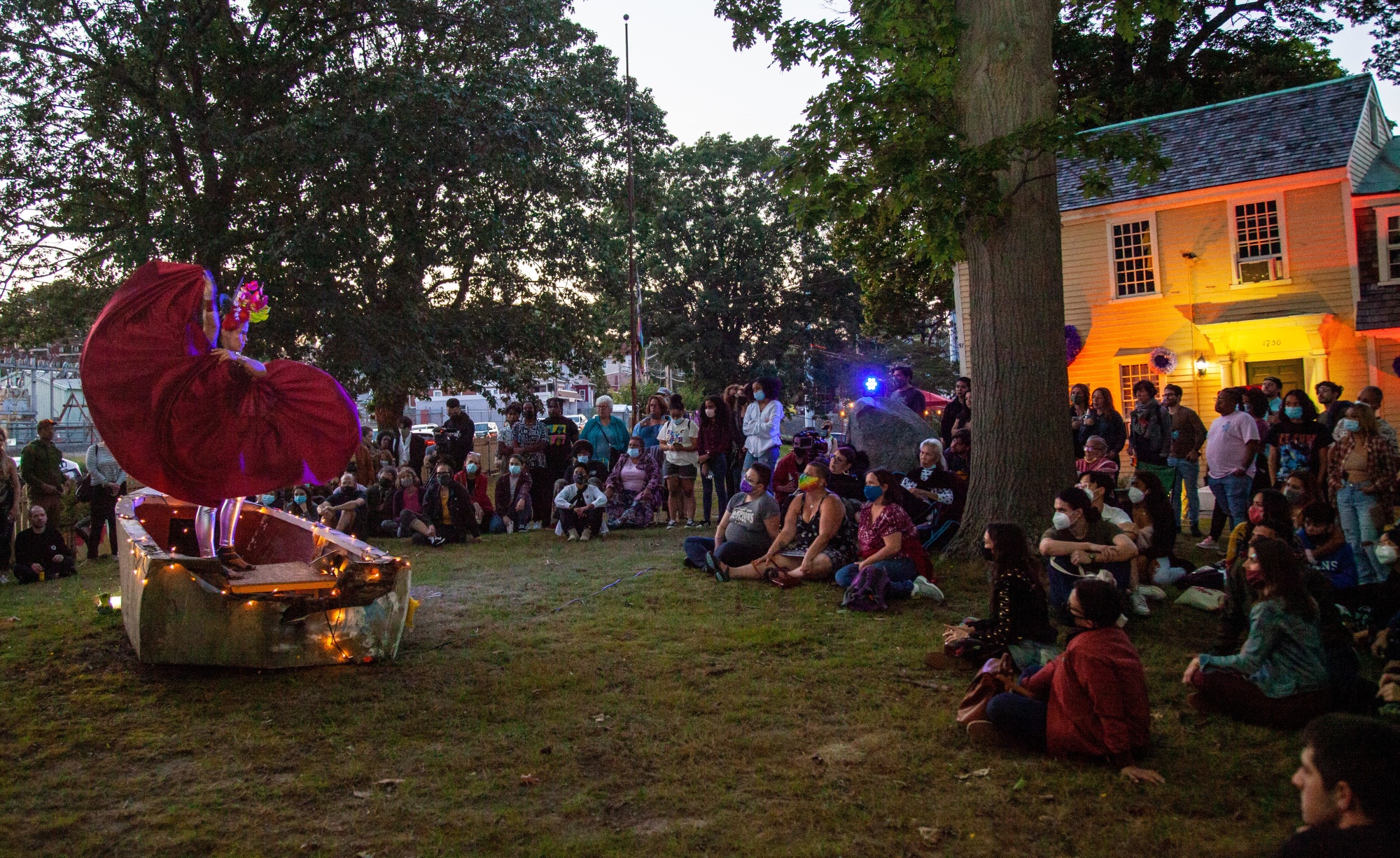 Haus of Glitter在个人和社区创伤愈合过程中强调基于身体的实践。在疫情期间,该地点成为周边社区以及普罗维登斯的酷儿和BIPOC社区的避风港。全面的户外节目包括每周瑜伽和舞蹈课程,一个社区花园,种植了艺术家祖先的植物,一个“女性与电动工具”研讨会,铜管乐队表演,一个容纳400人的露天舞会,以及一部原创的沉浸式歌剧《伊塞克·霍普金斯的历史幻想》。