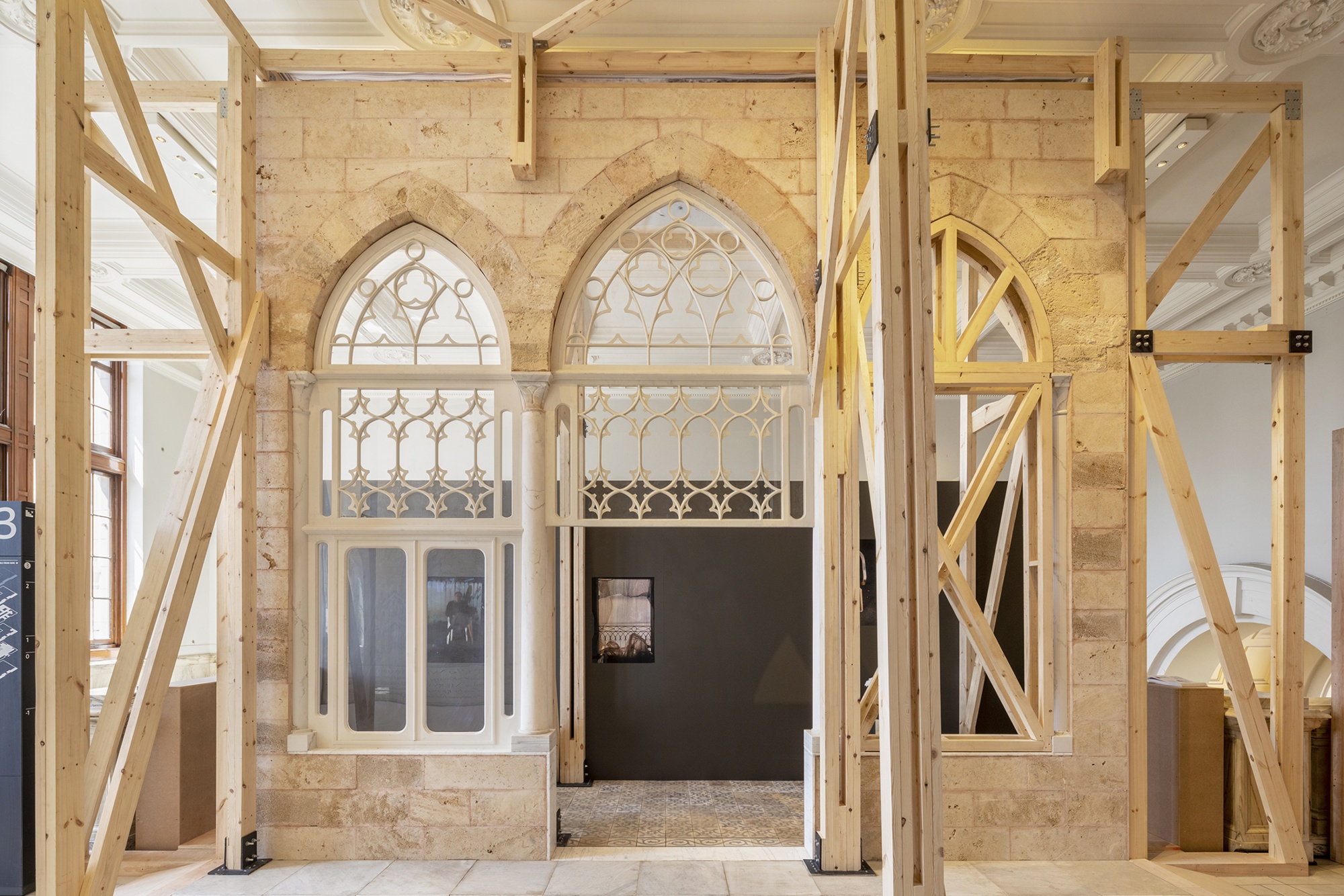 维多利亚和阿尔伯特博物馆的黎巴嫩之家展览中安装的传统风格立面。摄影师:Ed Reeve名为“黎巴嫩之家:拯救一个家,拯救一个城市”的装置是由法国-黎巴嫩建筑师安娜贝尔·卡里姆·卡萨尔设计的。她的目标是在国外重新引起对两年前在贝鲁特港口发生的大爆炸的关注,那次爆炸造成200多人死亡,并摧毁了对该市文化遗产至关重要的建筑。