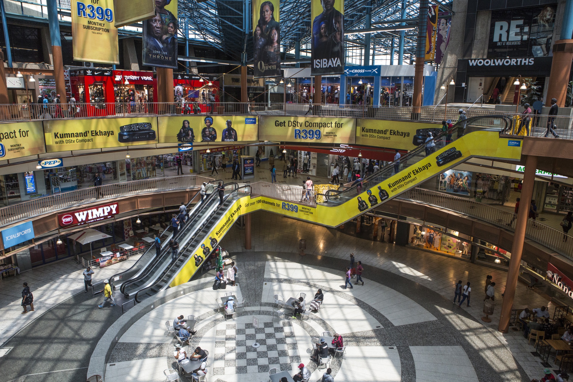访客在约翰内斯堡卡尔顿中心的主广场购物。摄影师:Guillem Sartorio/Bloomberg### 喜欢《下一个非洲》吗?