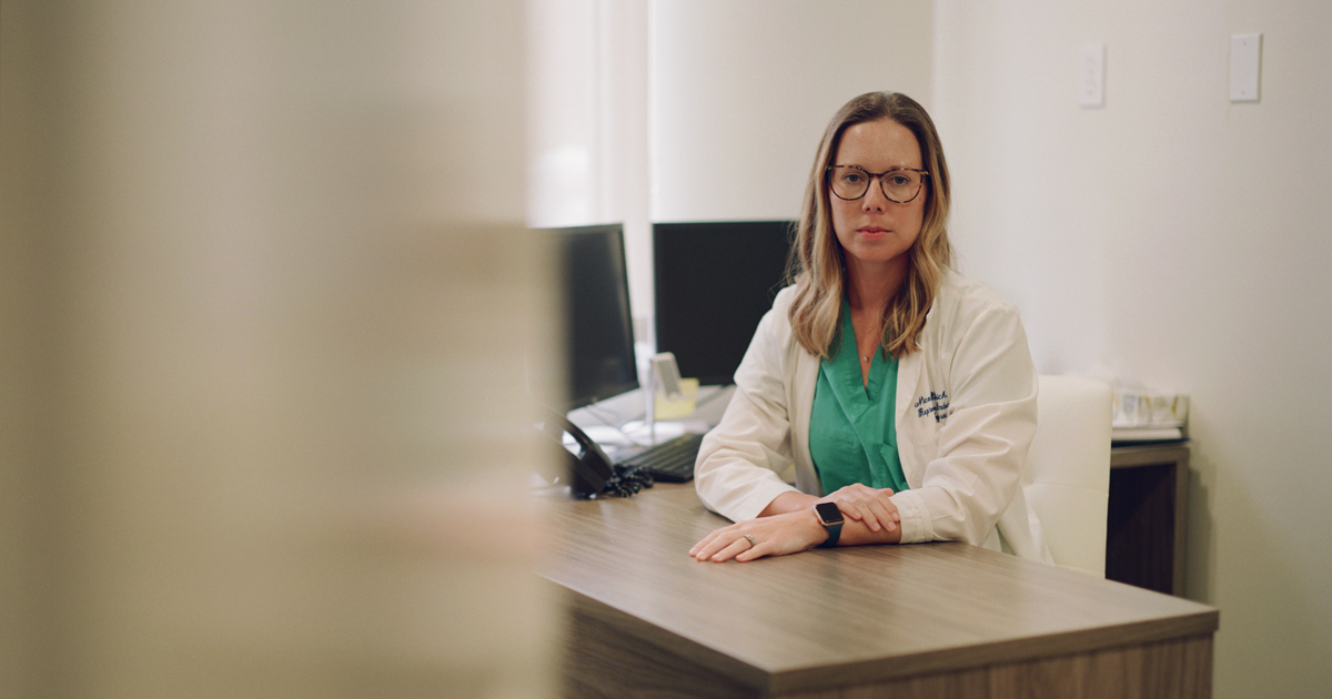新奥尔良奥多邦生育诊所的尼科尔·乌尔里希医生。摄影师:《彭博商业周刊》的丽塔·哈珀伊丽莎白原本不打算在2022年6月坐在一个检查室里准备进行另一轮体外受精,她一直期待着一个充满家庭海滩之旅、与女性朋友度假以及花时间观察女儿个性逐渐展现的轻松夏季。