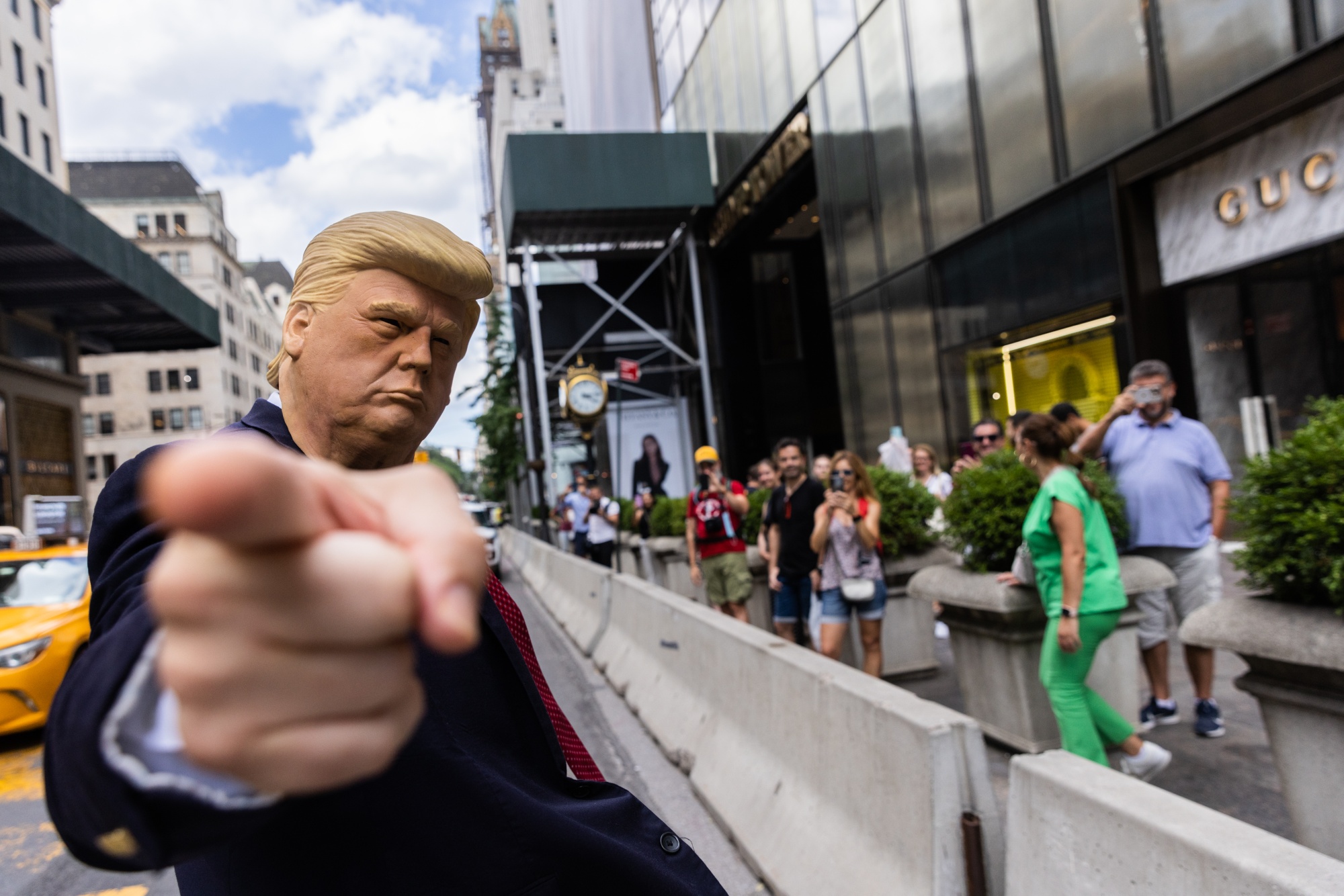 8月10日,纽约特朗普大厦的示威者。特朗普今天接受了纽约检察官办公室的询问,作为对其公司可能存在欺诈性资产估值调查的一部分。
