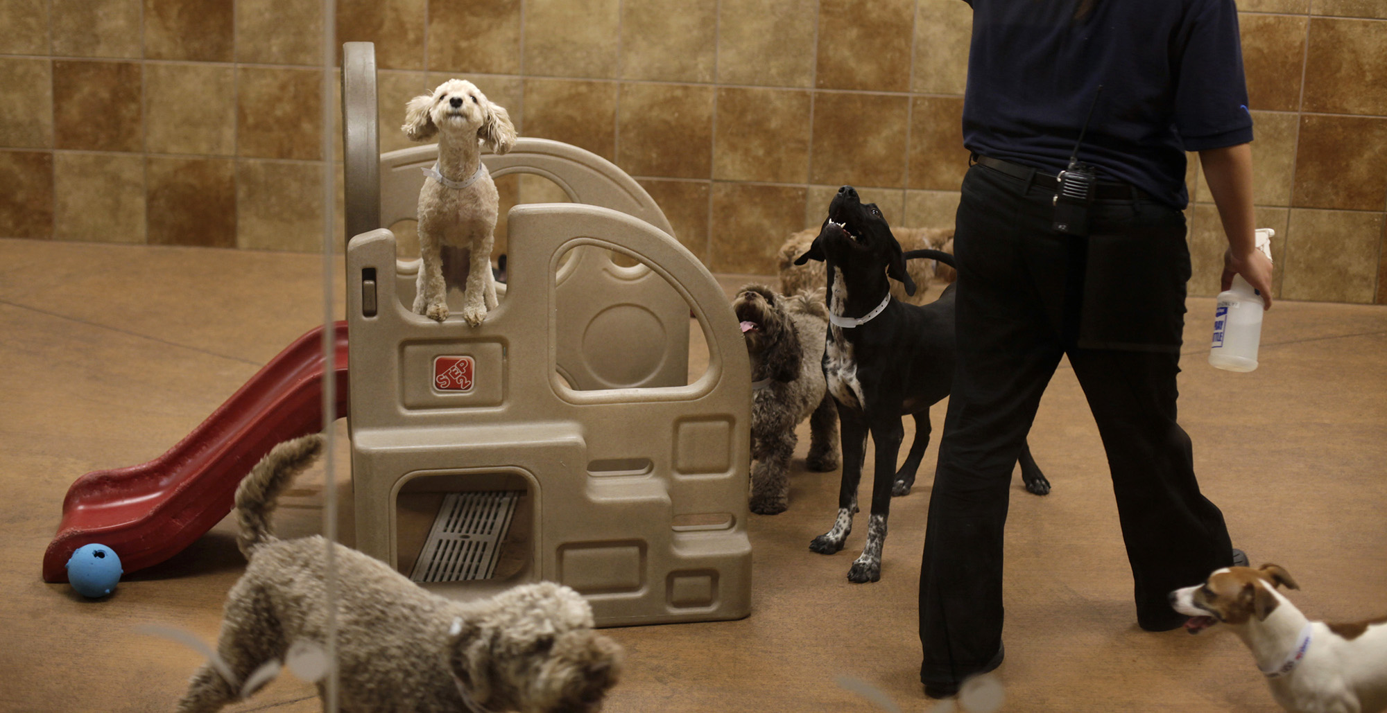 一名员工在纽约的PetSmart狗狗日托中与狗狗玩耍。摄影师:维克多·J·布鲁/彭博社Temenos AG 在瑞士银行软件公司股价15年来最大跌幅之前,就已经成为激进投资者的目标。