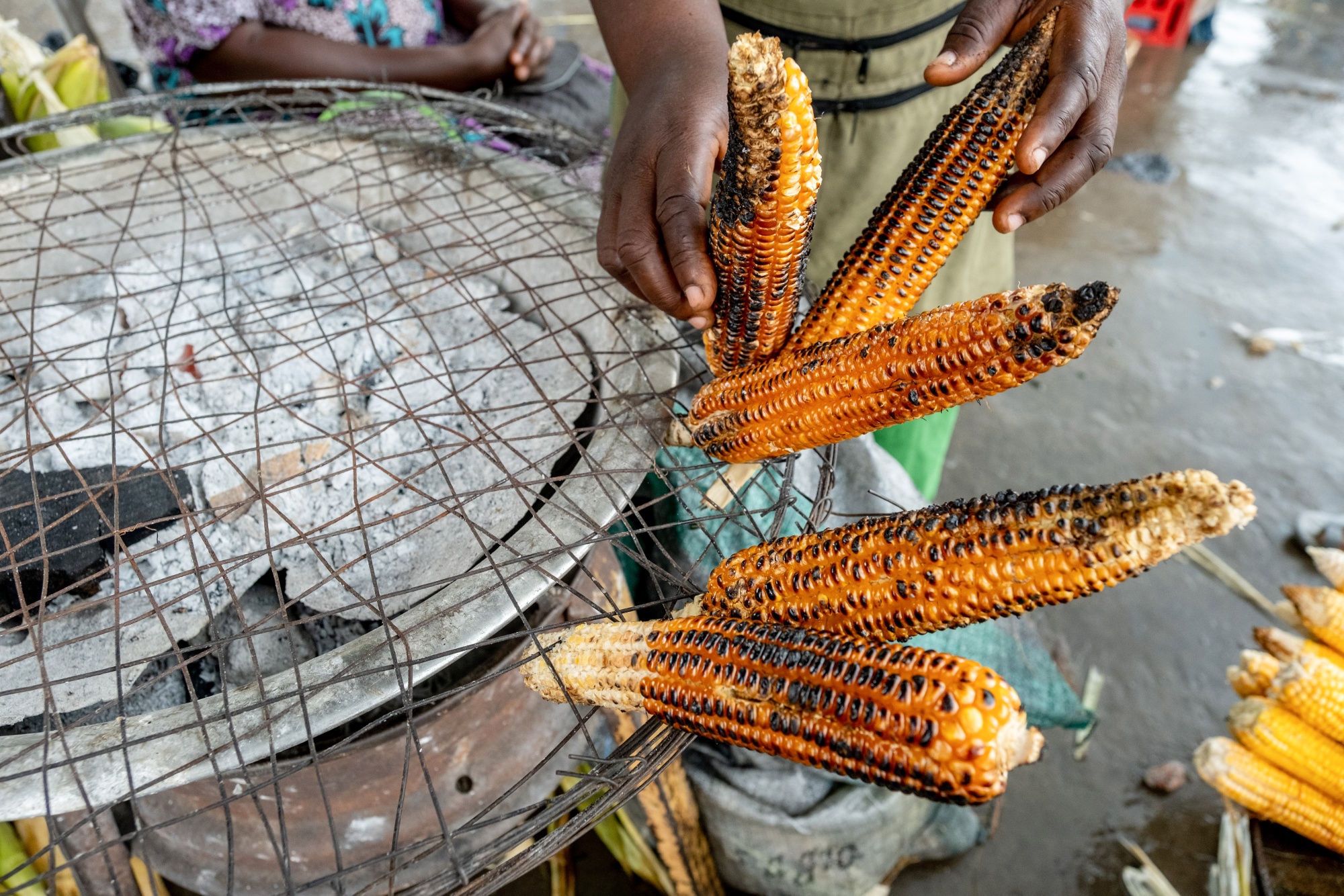 拉各斯尼日利亚Mile 12食品市场上的烤玉米小吃,拍摄于7月7日。摄影师:Damilola Onafuwa/彭博### 喜欢Next Africa吗?