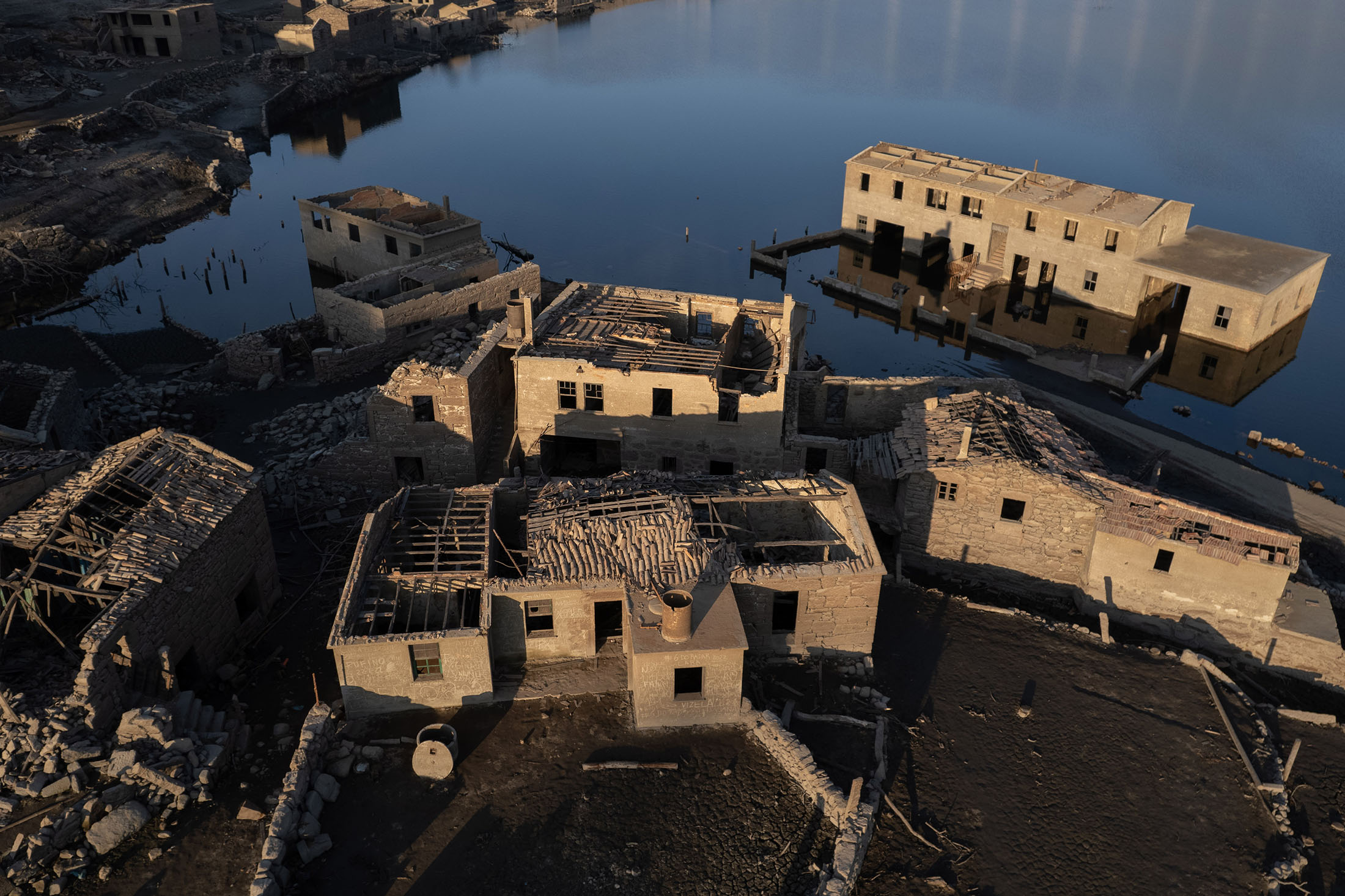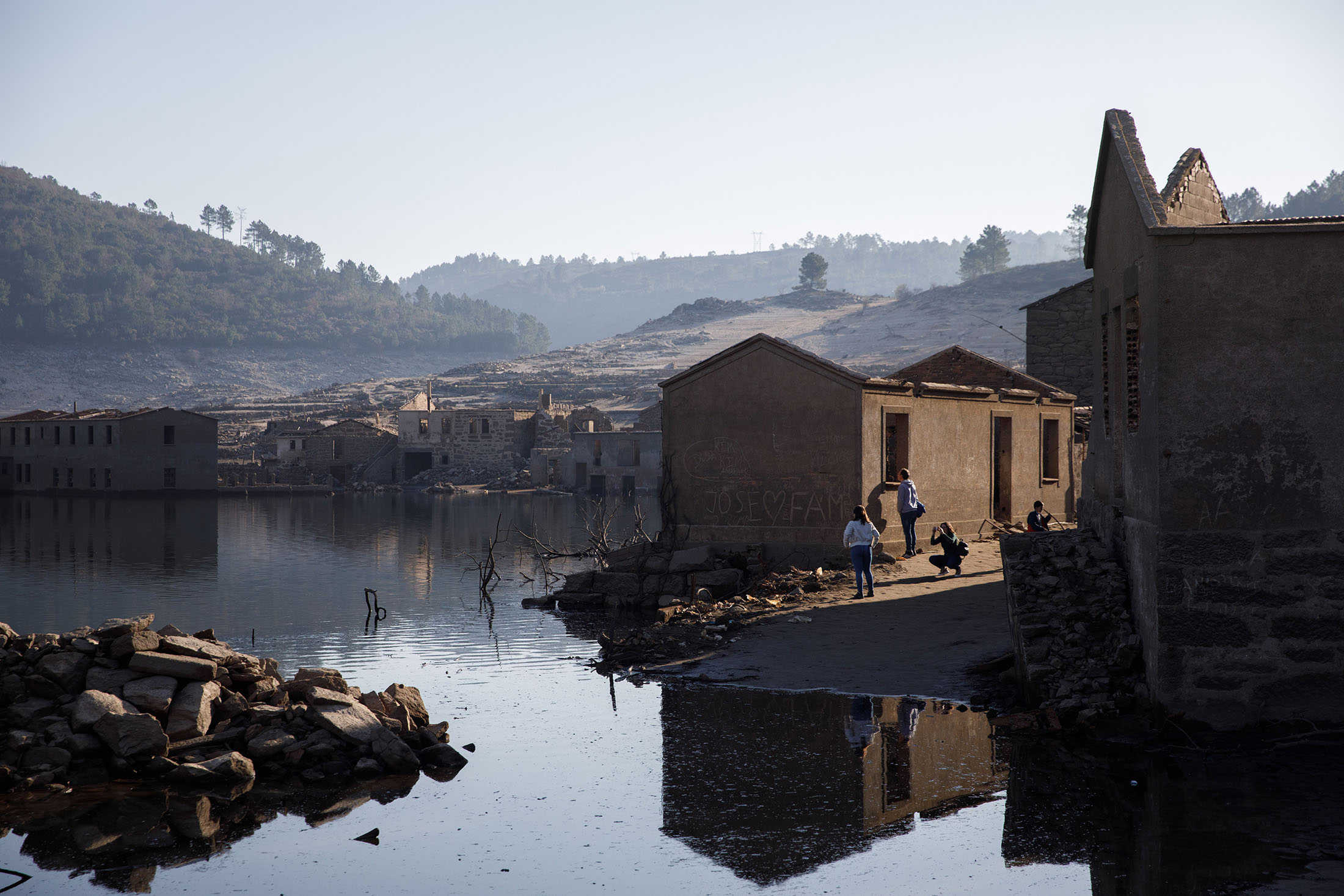 二月份的Alto Lindoso水库。摄影师:Goncalo Fonseca/BloombergAceredo,一个靠近葡萄牙边境的村庄,于1992年被淹没,以腾出空间建造Alto Lindoso水库。大约30年后的二月,干旱使这座小镇重新露出水面。很快,游客开始涌来参观这个停滞在时间中的地方。