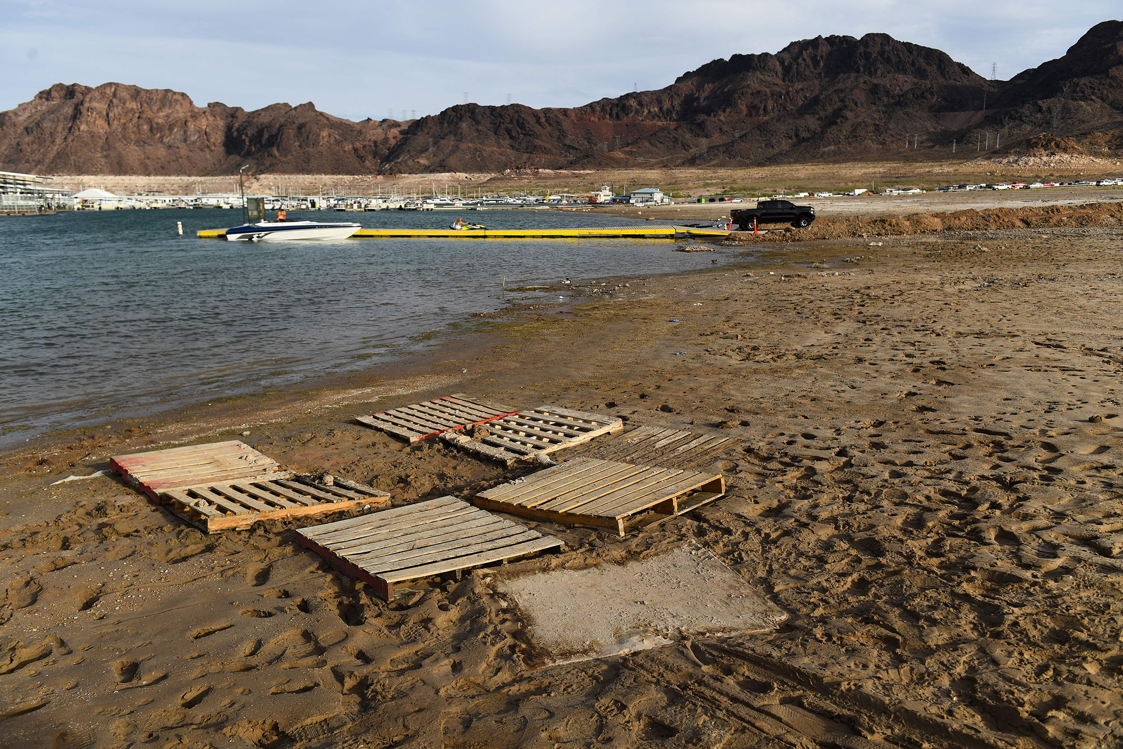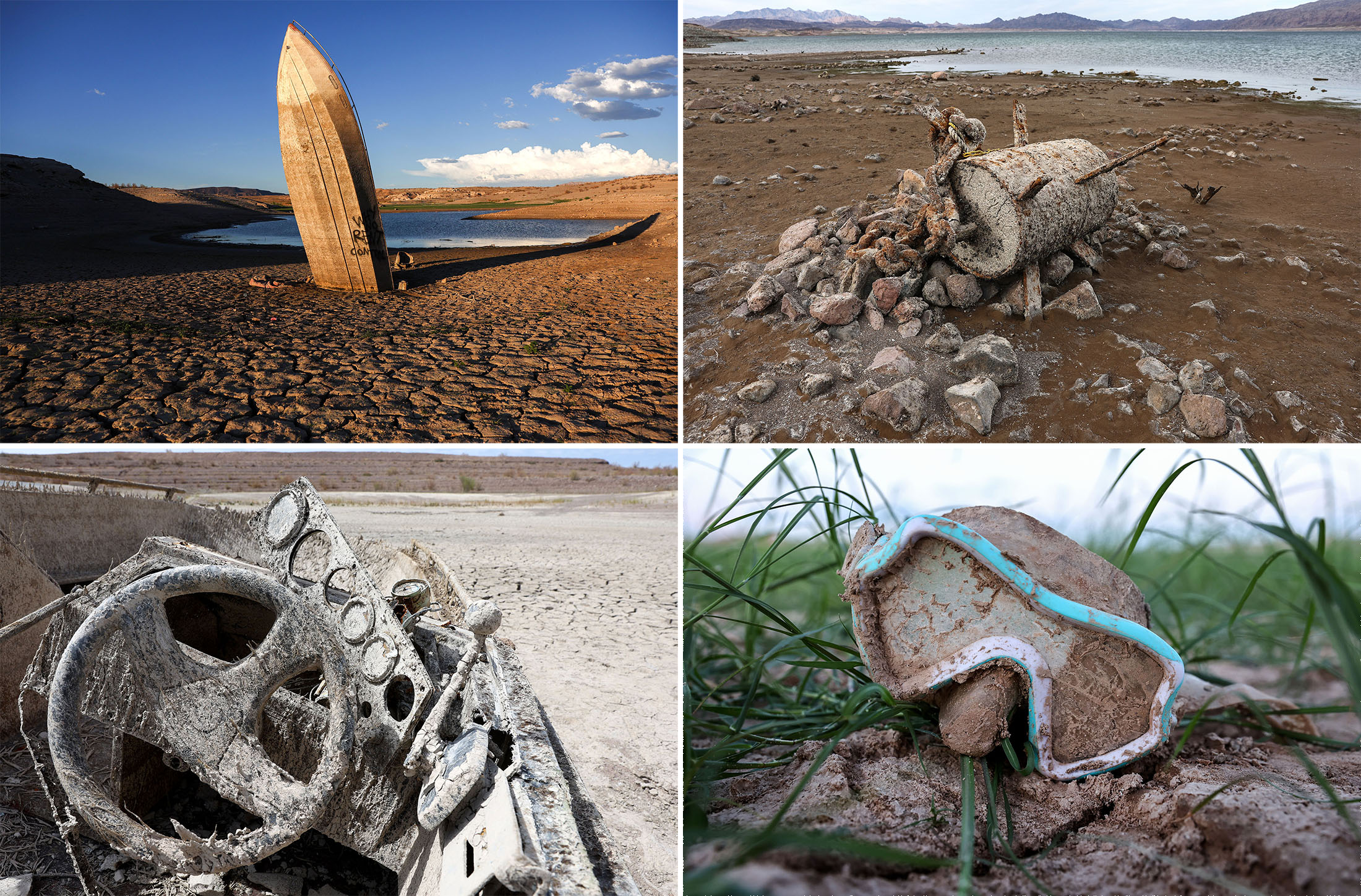 以前沉没的船只、生锈的残骸和一个眼镜蛇面具现在在梅德湖的湖床上露出,这一部分现在已经干涸。摄影师:Mario Tama/Getty Images一些美国水库本应在春季充满融雪,但实际上却出现了干涸的水槽痕迹,包括梅德湖。今年,梅德湖水位降至历史新低。 融雪。湖水位降至历史新低。