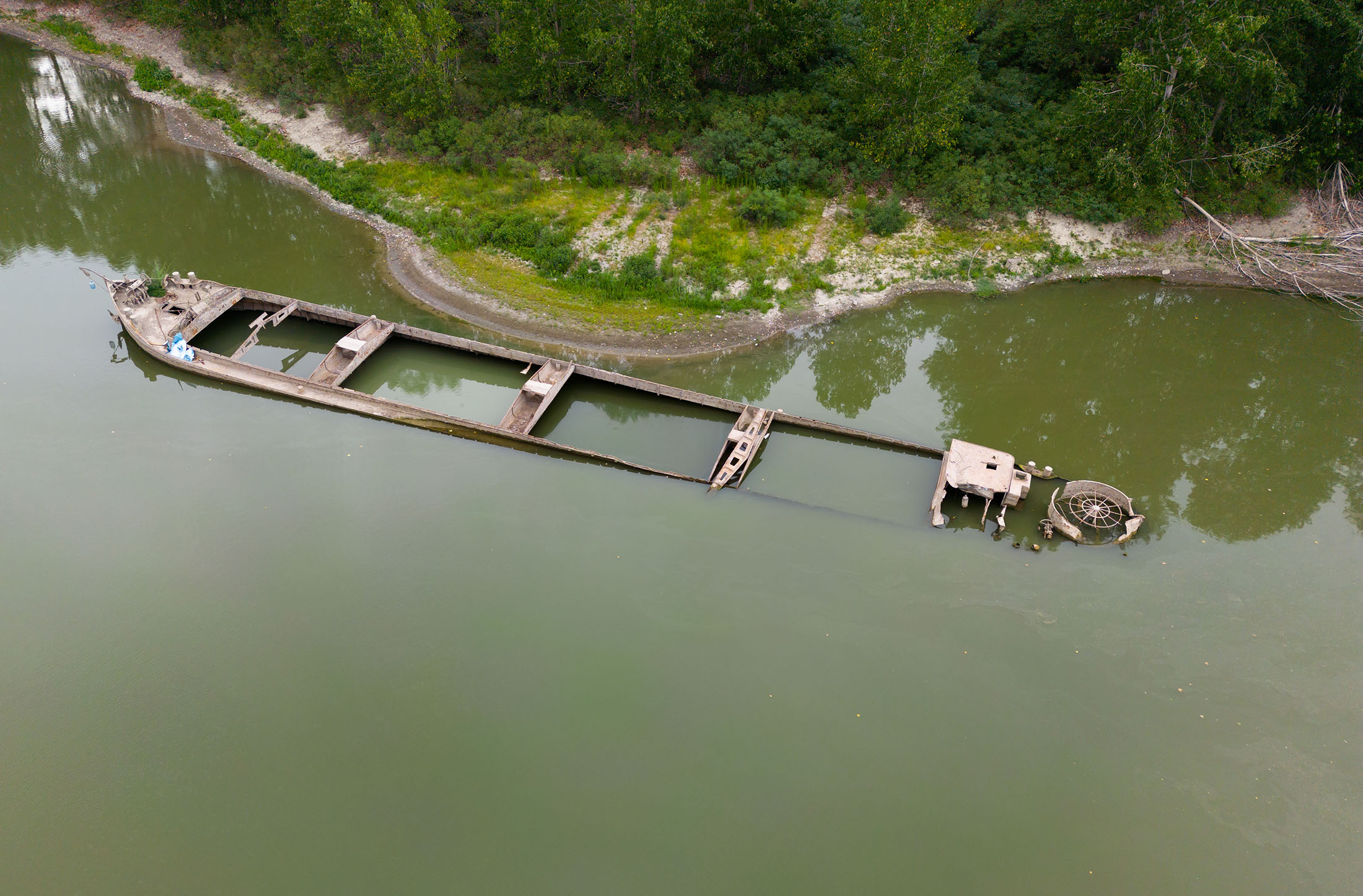 今年夏天在意大利波河的二战残骸。摄影师:Emmanuele Ciancaglini/Ciancaphoto Studio/Getty Images数月没有降雨以及阿尔卑斯山融化的雪流提前停止导致意大利最长河流波河的水位降至 70 年来的最低点。干涸的河床揭示了之前隐藏的二战时期的残骸,如德国坦克和货船。