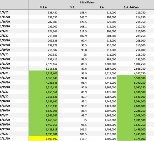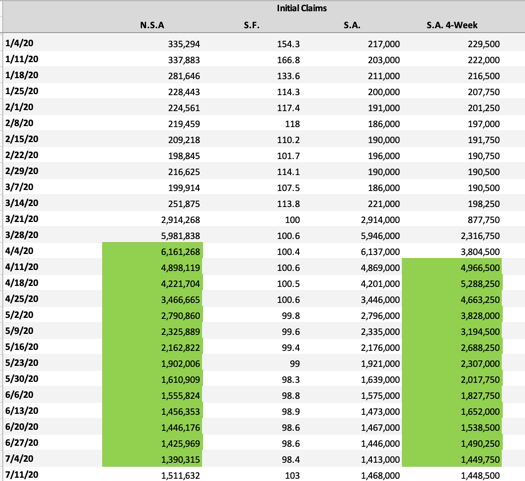 为了让你感受到这种巨大变化,这是我在2020年改变之前做的一个电子表格截图。请注意绿色部分的4周平均季节调整(S.A.)数字。