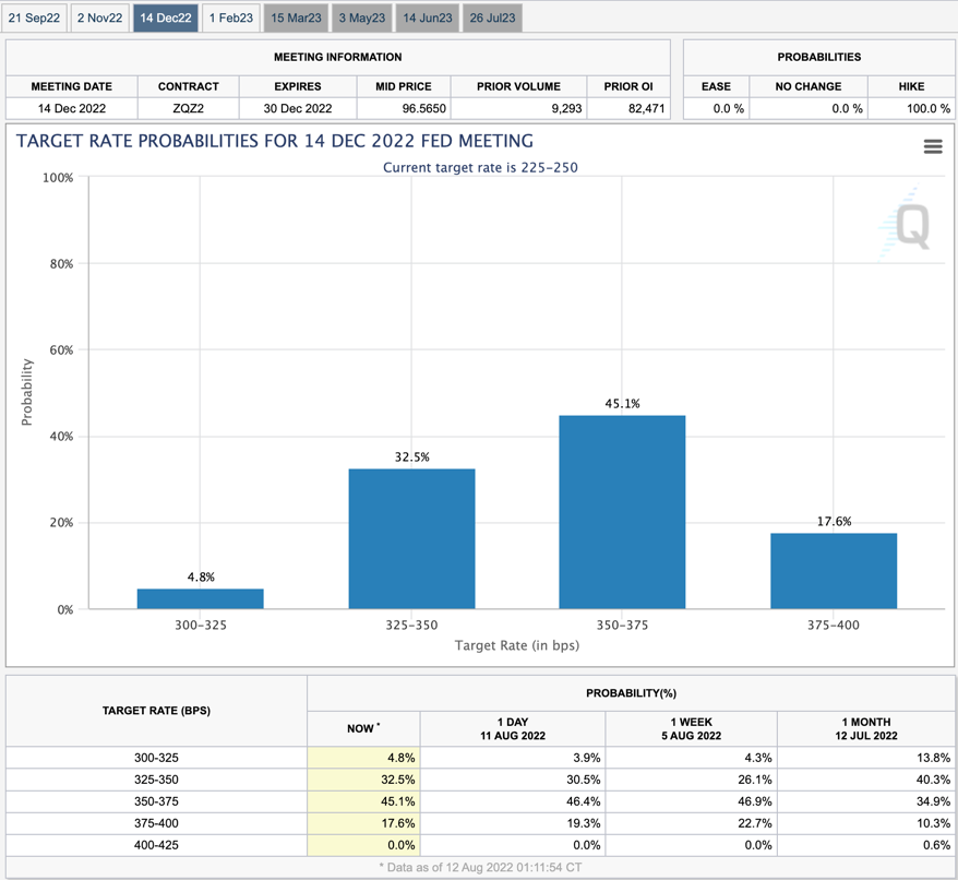 最终,年底的联邦基金利率为4%,明年为4.5-5.0%,远远超出了交易员目前的押注。即使在上周卡什卡里和布拉德发表鹰派言论之后,联邦基金期货仅对2022年12月的利率定价约为3.4%。