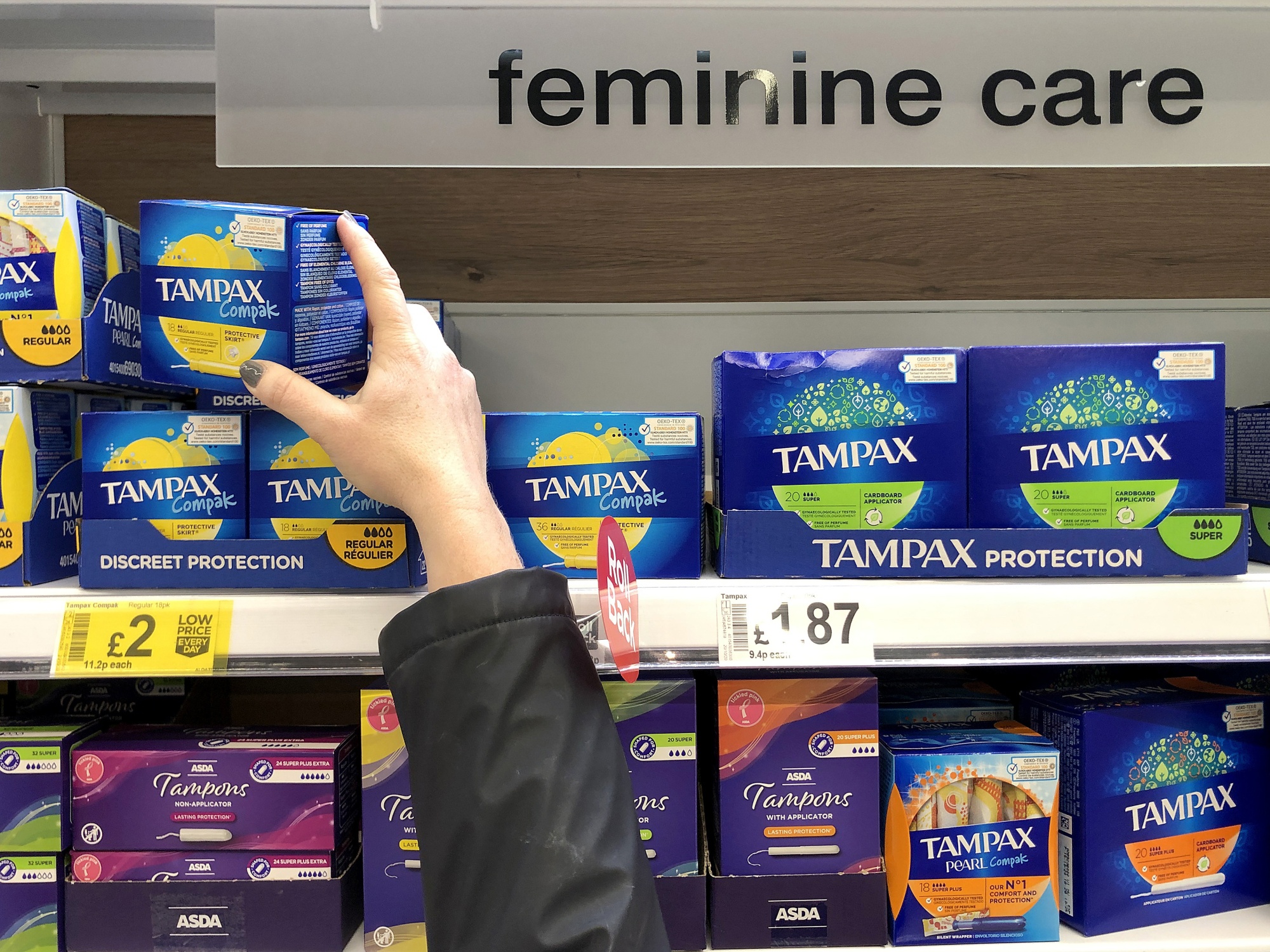 在苏格兰邓巴超市看到的经期用品。
