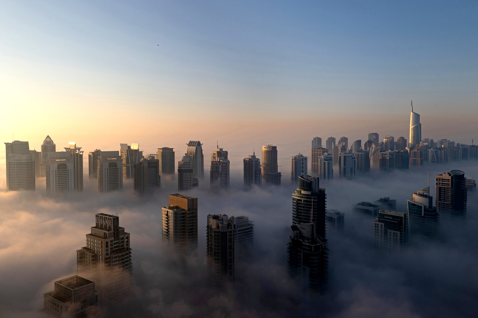 迪拜的早晨雾。摄影师:Christopher Pike/Bloomberg
