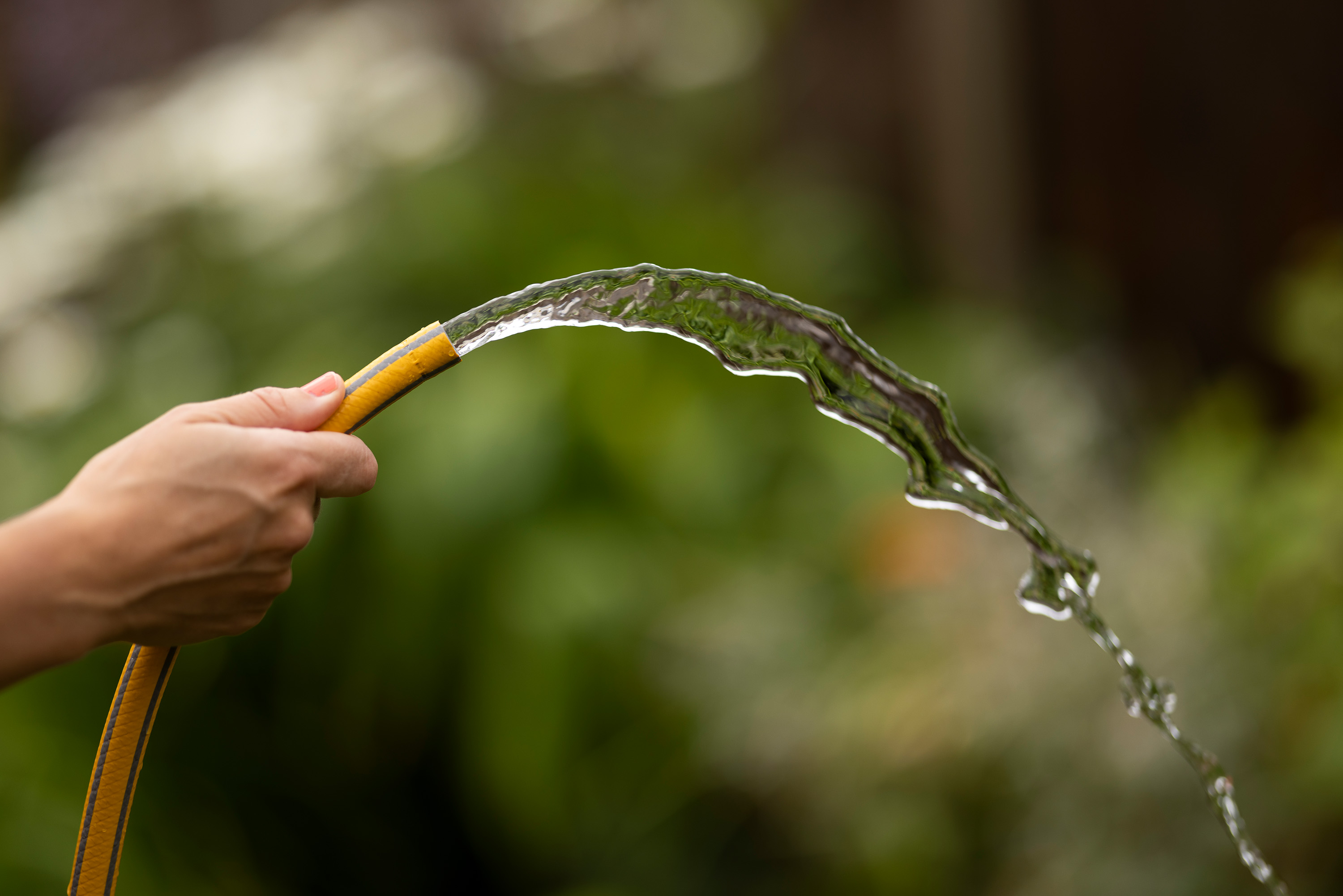 伦敦,英国 - 2022年8月3日:在这张照片插图中,一根软管被用来浇灌伦敦,英国的花园。南部部分地区已经发布了软管禁令,包括汉普郡,从8月5日开始生效,以及肯特郡,从8月12日开始生效。(摄影师:丹·基特伍德/盖蒂图片社)摄影师:丹·基特伍德/盖蒂图片社 欧洲