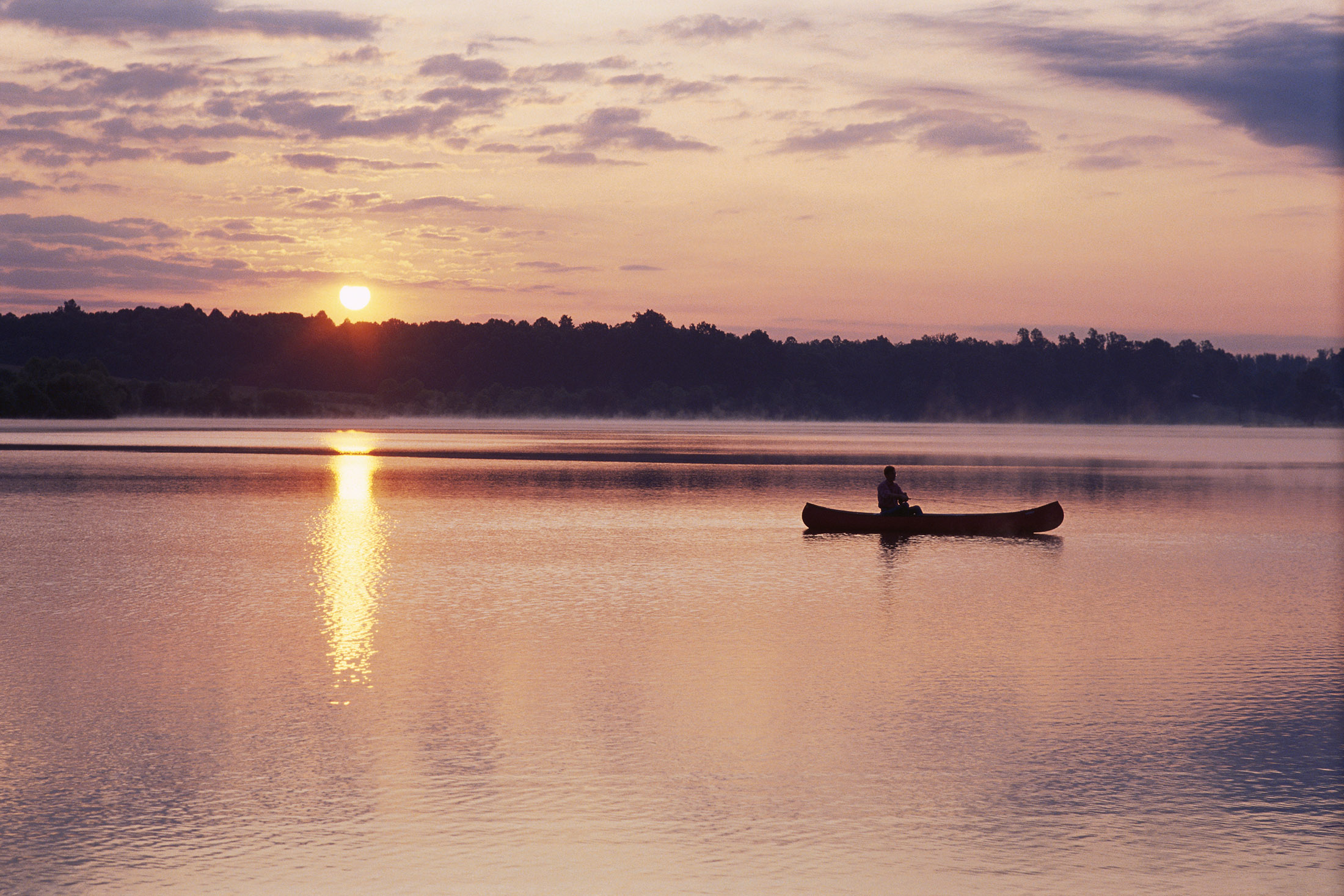 弗吉尼亚州安娜湖上的一名划船者。