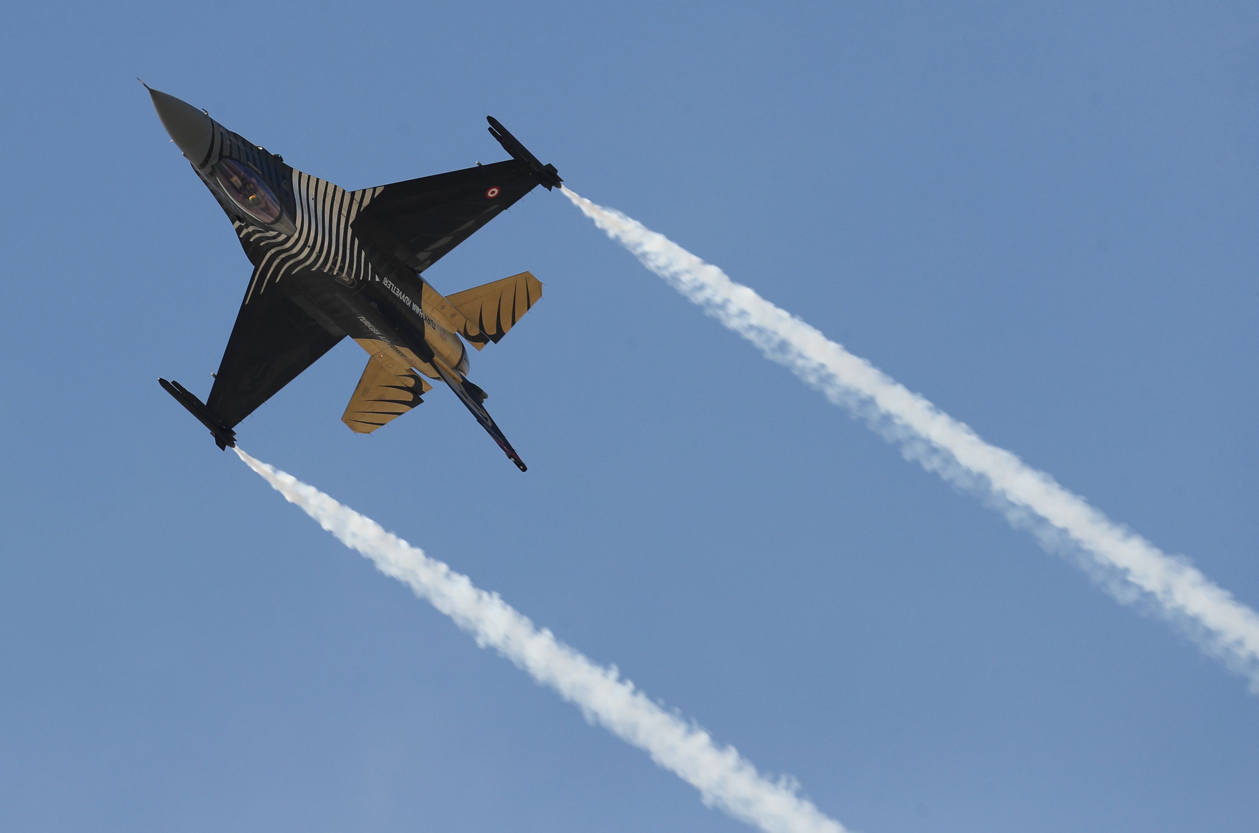 土耳其F-16飞行员在2023年10月29日在土耳其安塔利亚进行示范飞行。