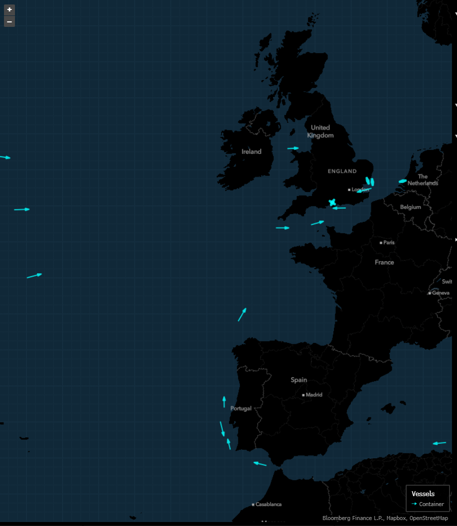 与此同时,Flexport估计,当装卸工坚持要求更高工资时,积压的货物堆积可能接近90,000个20英尺集装箱。彭博社提供的航运数据显示,至少有10艘驶往英国港口并计划在未来两周内到达的集装箱船只: