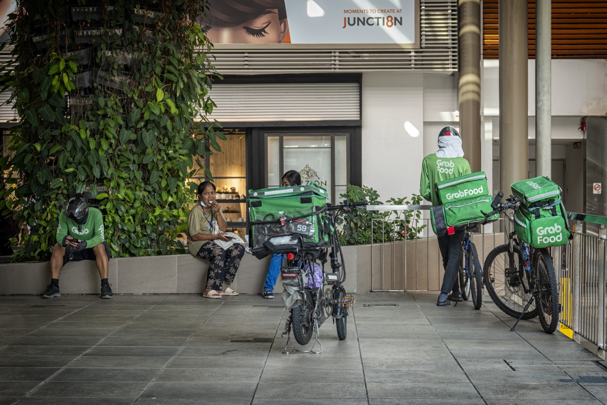 新加坡的GrabFood外卖骑手。摄影师:Bryan van der Beek/Bloomberg