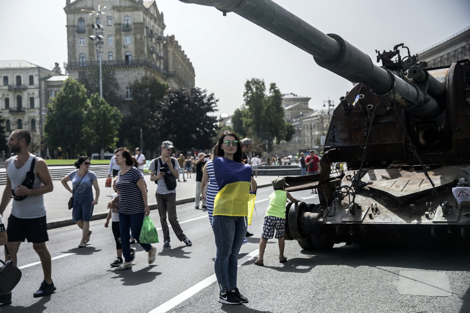 参观者在基辅独立日前观看军事装备展览。