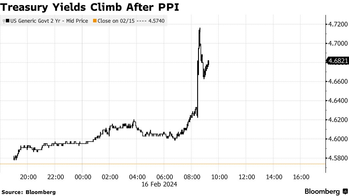 “PPI很糟糕… 利率上升,”NatAlliance Securities的Andrew Brenner说,他预计联邦储备委员会将更加鹰派。