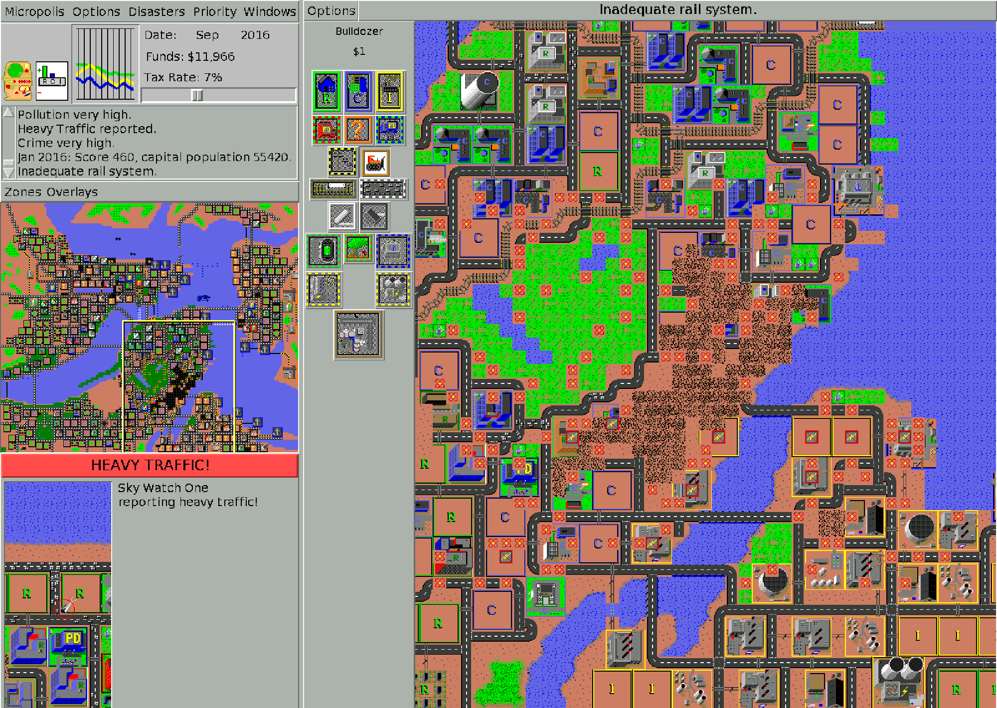 最初的SimCity的工作标题是Micropolis。来源:Maxis Software/Electronic Arts/Wikipedia在1989年首次发布的视频游戏SimCity中,玩家从一块简单的土地开始 —— 逐渐转变为几栋房屋,发展成为一个郊区乌托邦,最终成为一个充满居民的繁荣虚拟大都市,这些居民通常被称为“模拟人”。游戏中的城市规划挑战从平凡的征税和建设电力网格,到像UFO袭击这样超现实的障碍。
