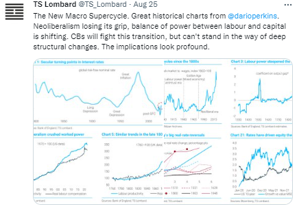 TS Lombard的达里奥·帕金斯在本月发表的一份报告中预测,这些力量将形成一个“新的宏观超周期”。