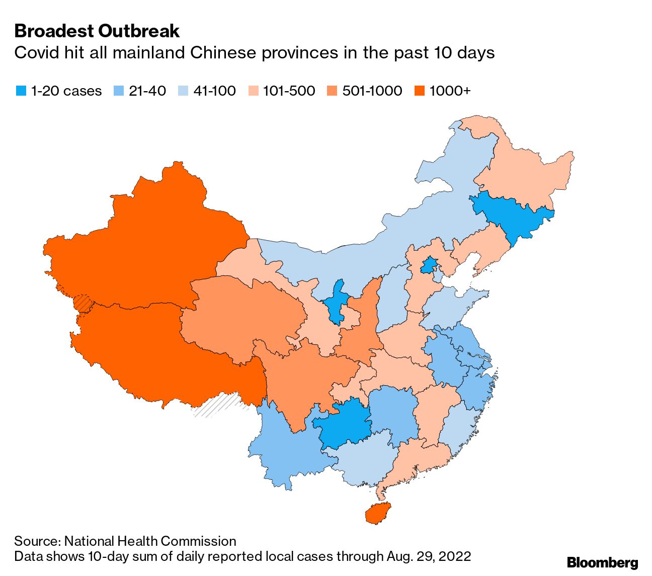 尽管实施了世界上最严格的措施来阻止病毒传入,中国仍在全国各省抗击Covid-19。过去10天,31个中国大陆省份至少记录了一起本地Covid病例,反映出自2021年2月以来对该病毒的最广泛暴露。