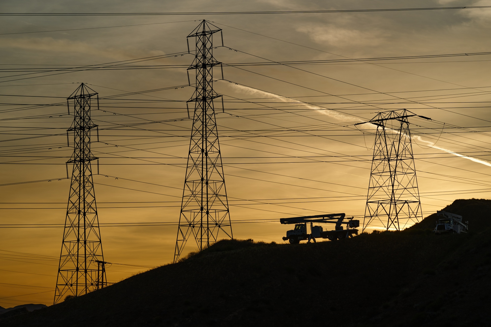 加利福尼亚圣克拉丽塔的电力输电塔。