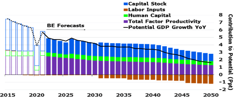 但后果比预期的要早。随着出生人数减少,彭博经济学家Eric Zhu表示,人口将在2022年开始收缩,比之前预计的提前五年,这将对增长前景产生影响。