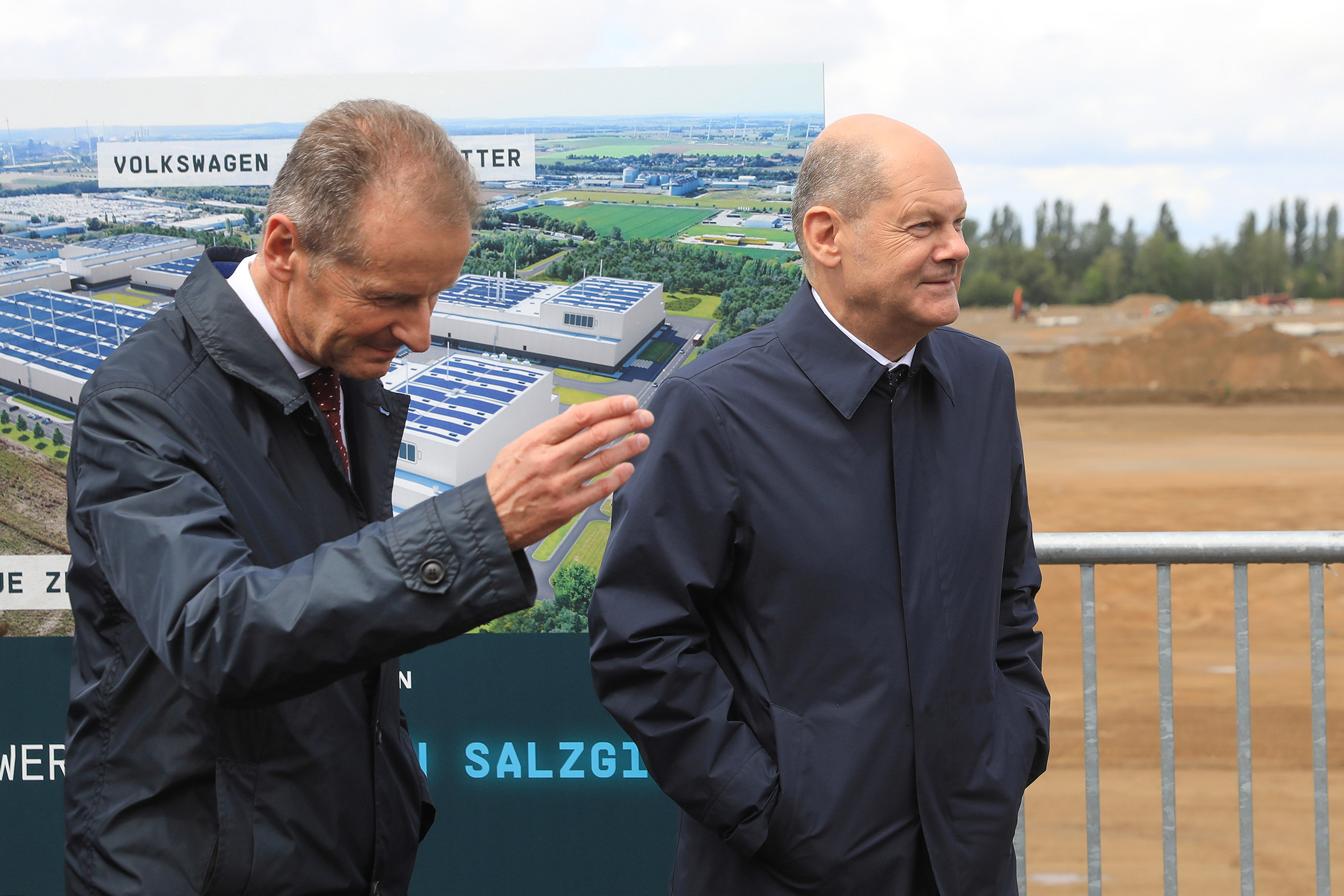 Herbert Diess(左)和德国总理奥拉夫·肖尔茨(Olaf Scholz)在德国萨尔茨吉特(Salzgitter)大众未来电池枢纽的奠基仪式上,摄于7月7日。摄影师:Krisztian Bocsi/Bloomberg大众在其 ID 系列车型上一开始就出现了问题。Diess 在担任该品牌负责人时成立了一个软件部门,该部门于2016年末开始为车辆和几个基于其模块化架构衍生的后续车型构建操作系统。该系列的首款电动车 ID.3 之所以直到2020年才按时交付,是因为早期购买者同意等待几个月,以使某些功能正常运行。