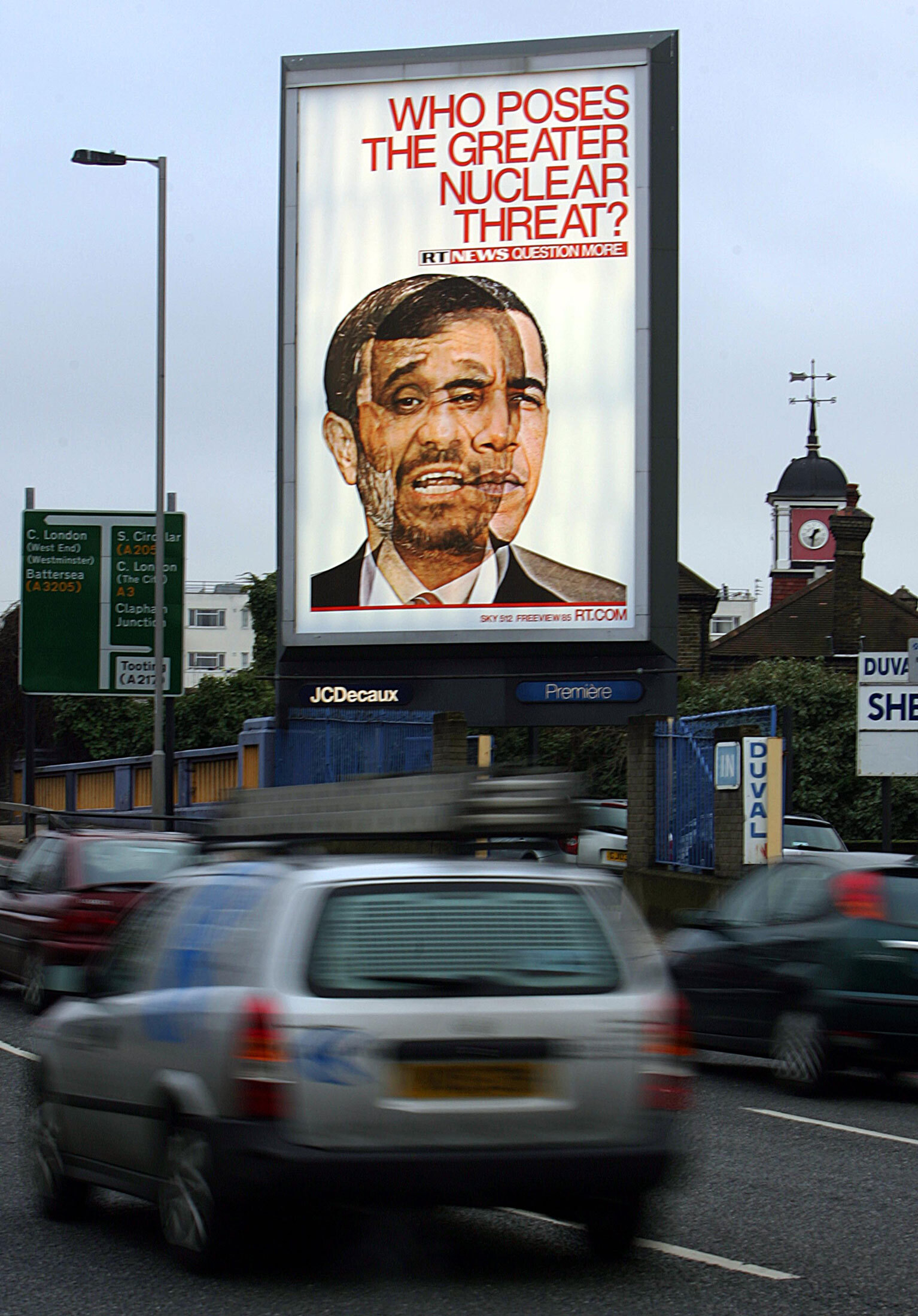 RT的新口号,由广告巨头 麦肯提供,是“质疑更多”,其主持人将其解释为要质疑国际政治最基本的假设。在英国,广告该频道的广告牌叠加了巴拉克·奥巴马和伊朗总统马哈茂德·艾哈迈迪内贾德的形象,问道:“谁构成了最大的核威胁?”