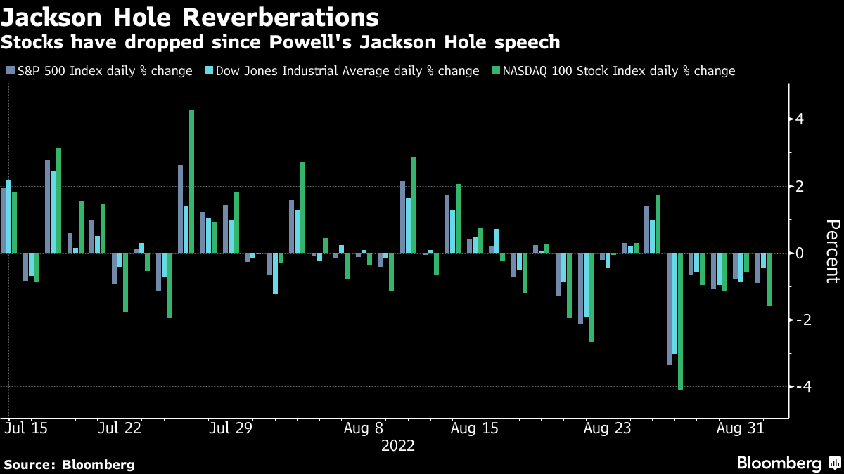 从风险资产的角度看,独立顾问联盟的克里斯·扎卡雷利认为,好消息可能是坏消息,因为市场正在认真对待8月26日鲍威尔的“严厉警告”: