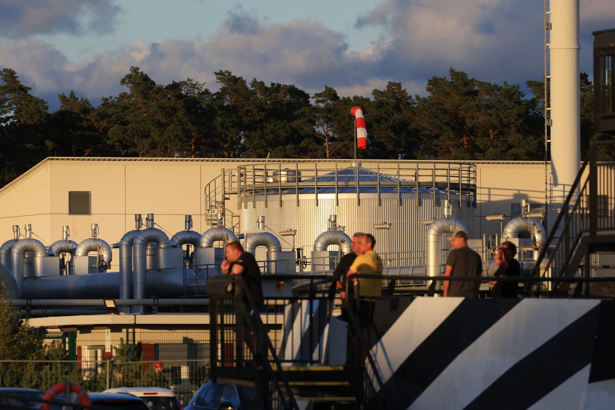 德国卢布明的北溪1天然气管道的气体接收压缩机站的工人。