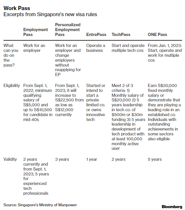 新加坡上周公布了一系列外国工人的公告,其中一些是针对新冠疫情时期政策的逆转,旨在缓解国内劳动力市场上升的失业率。最引人注目的是为特别优秀人才推出的特别五年签证,资格工资为新币30,000(21,400美元)。