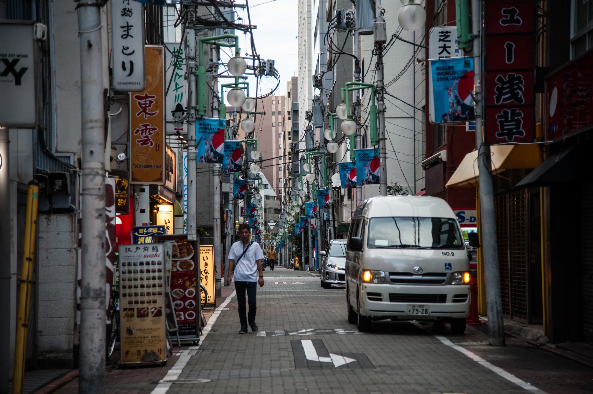 东京的典型街道展示了三个有助于行人安全的特点:狭窄的行车道、较小的车辆和没有街边停车位。