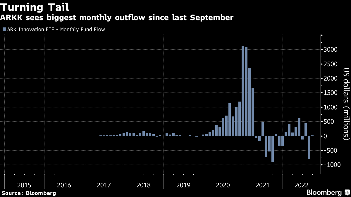 然而,上个月ARKK看到了自去年9月以来的最大单月资金流出。