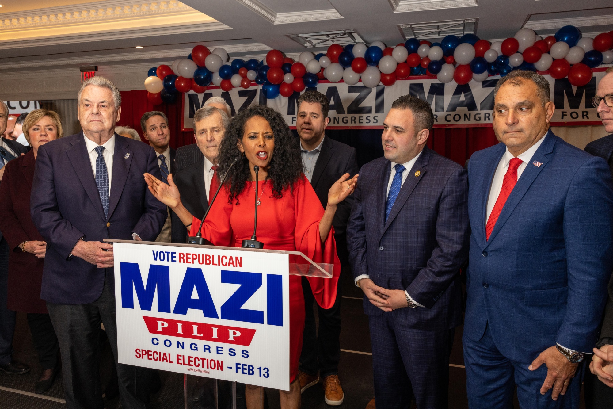 马齐·梅莱萨·皮利普在纽约东草地的选举之夜观看派对上承认失败。来源:彭博社苏奥兹此前在2017年至2023年代表第三选区,然后在2022年发起了一场未成功的竞选纽约州州长的竞选,这使桑托斯赢得了他空出的席位。