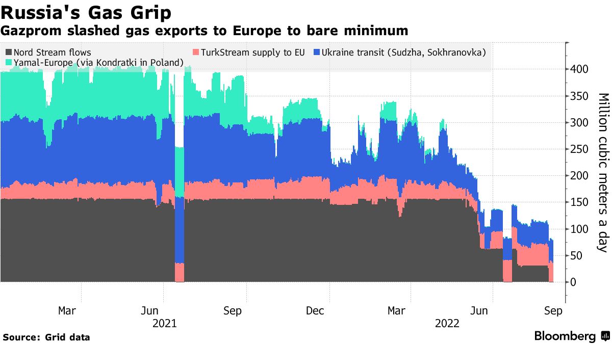 战时能源 | 欧盟正准备推出激进计划来应对能源危机,包括干预以缓解市场上的流动性紧张。委员会主席乌苏拉·冯德莱恩表示,能源部长们将讨论通过征收税款和价格上限以及强制需求减少来获取企业的暴利。今年冬天看起来糟糕,但明年冬天可能会更糟。