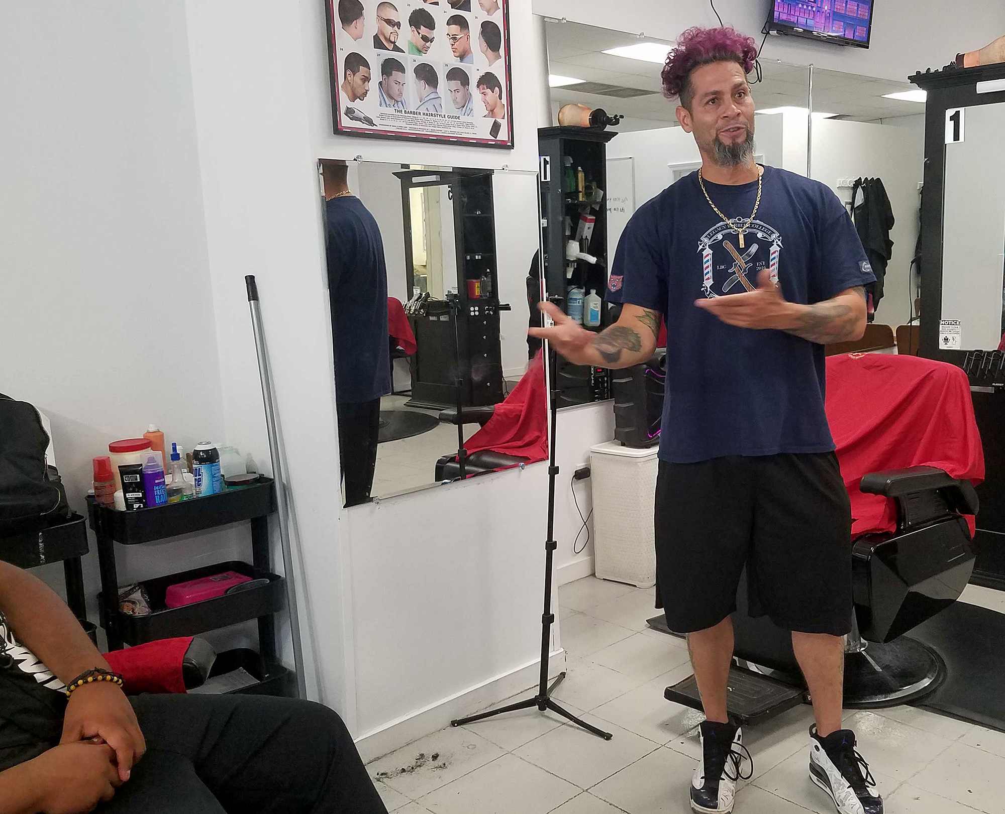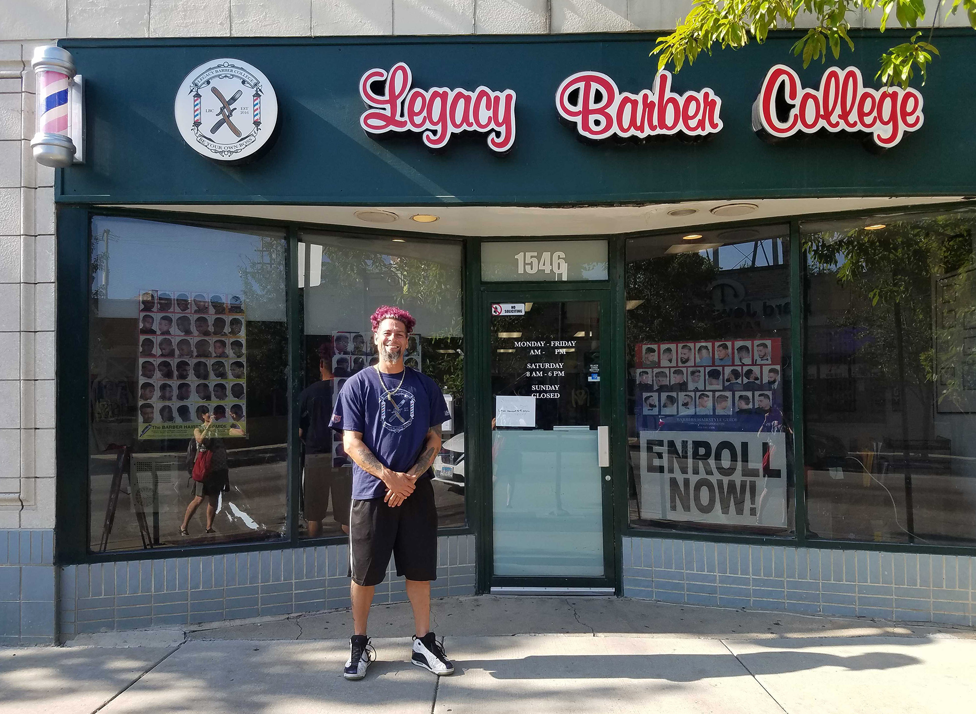 Juan Rivera,芝加哥罗杰斯公园社区Legacy理发学院的所有者,正在帮助其他从监狱释放的人找到职业。