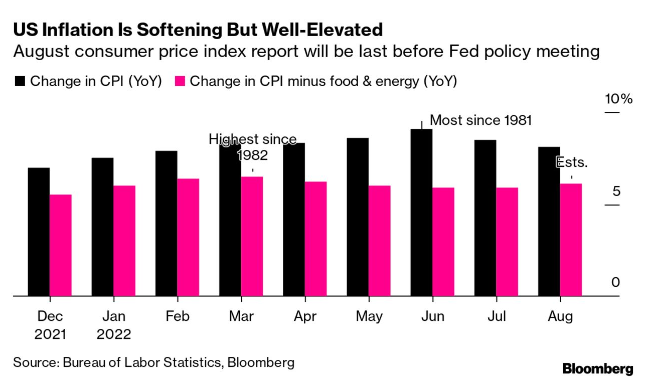 美国消费者价格指数预计将显示,与去年同期相比,8月份的年度涨幅为8%,低于上个月的8.5%,这是连续第二个月的减速,Vince Golle在这里概述。