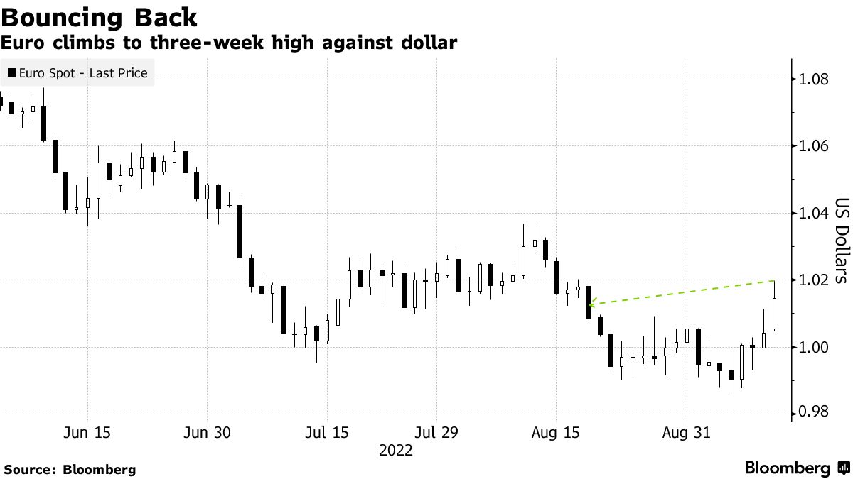 欧元兑美元汇率飙升高达1.6%,达到1.0198美元,这是自3月以来的 最大涨幅*,受到欧洲央行官员更加鹰派的言论支撑,强调了进一步加息的必要性。根据彭博经济学家调查,预计美国8月份的物价增长有所放缓,这可能减少对支撑美元的更激进的美联储加息需求。*